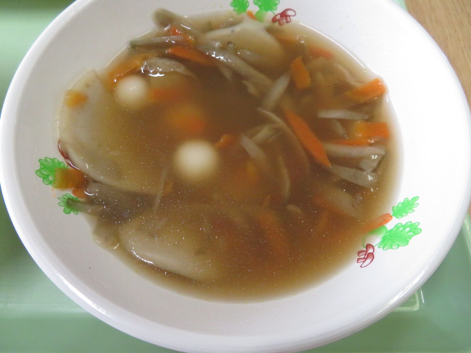 とお正月のようなおいしいメニューでした。雑煮には小さな白玉もちが入っていました。来週からかなり冷え込むようです。給食をしっかり食べて寒さに負けない体をつくりましょう。