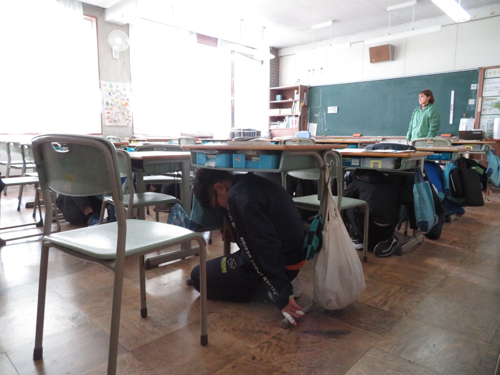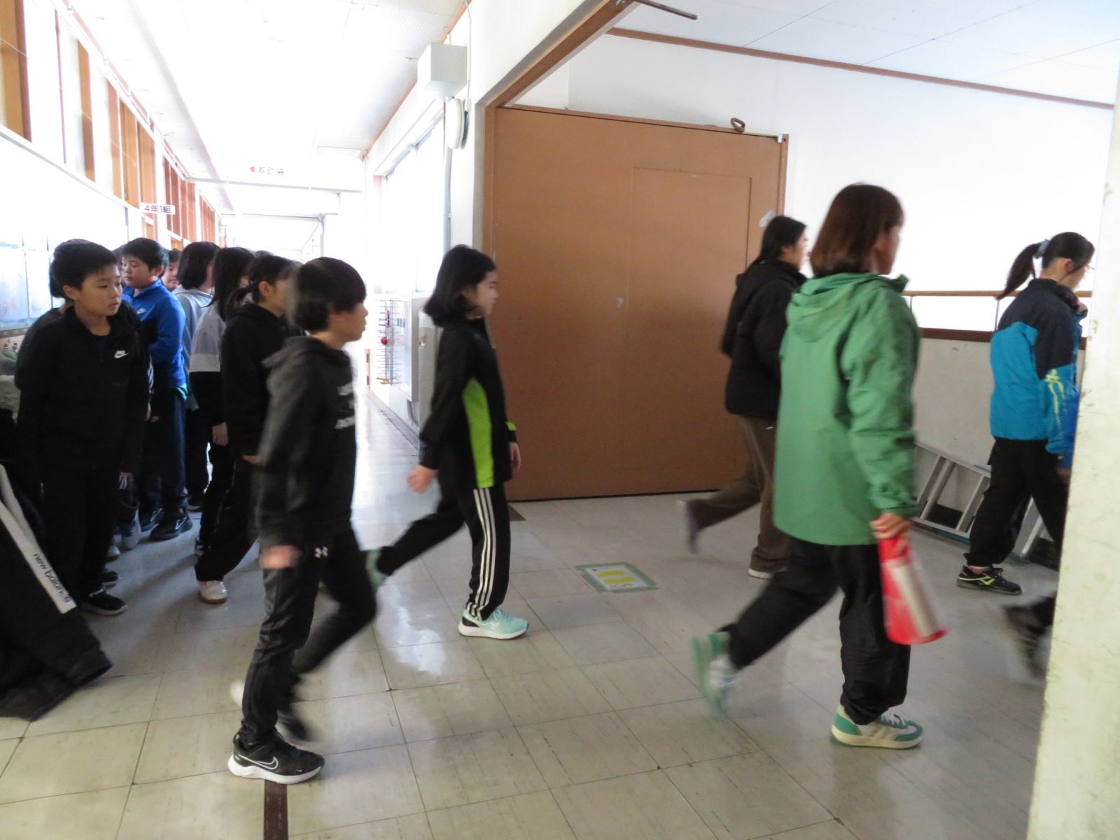 を行いました。朝の雪の影響で児童玄関までの避難となりましたが,どの学級もお話をせず,列を乱さず,真剣に訓練に参加していました。
