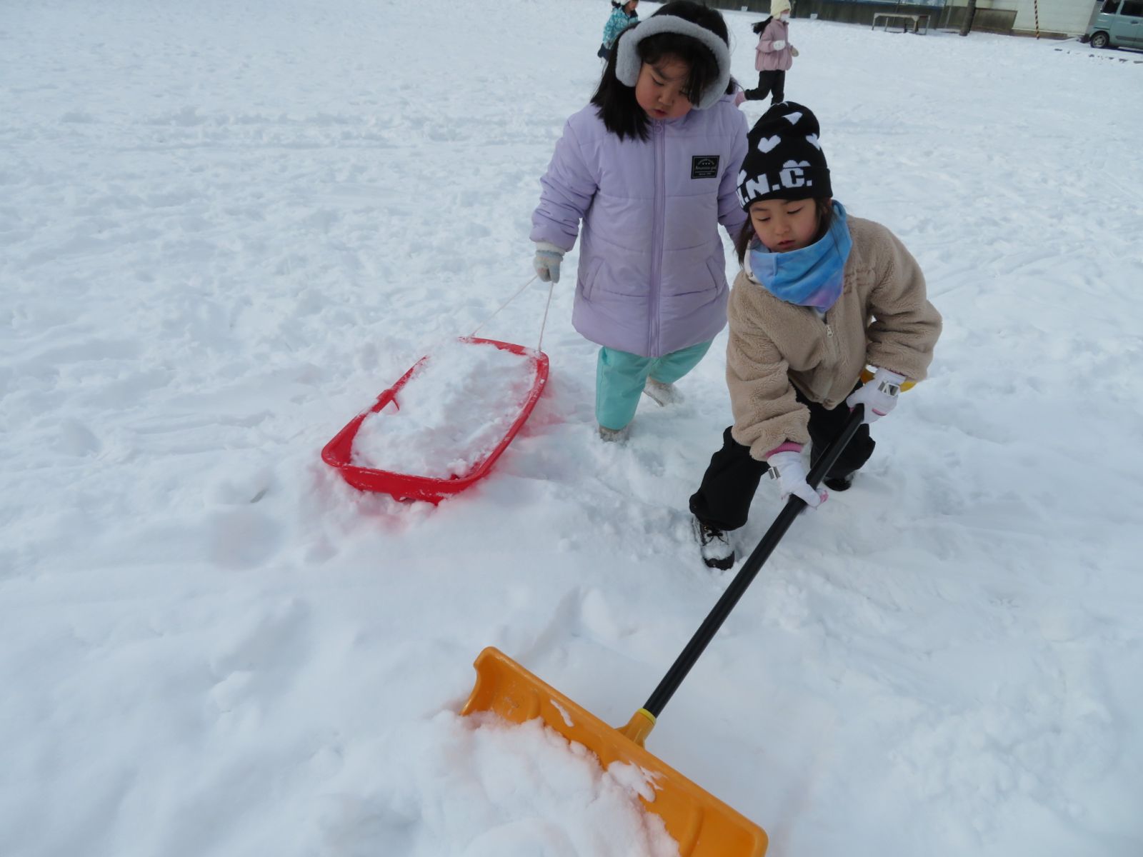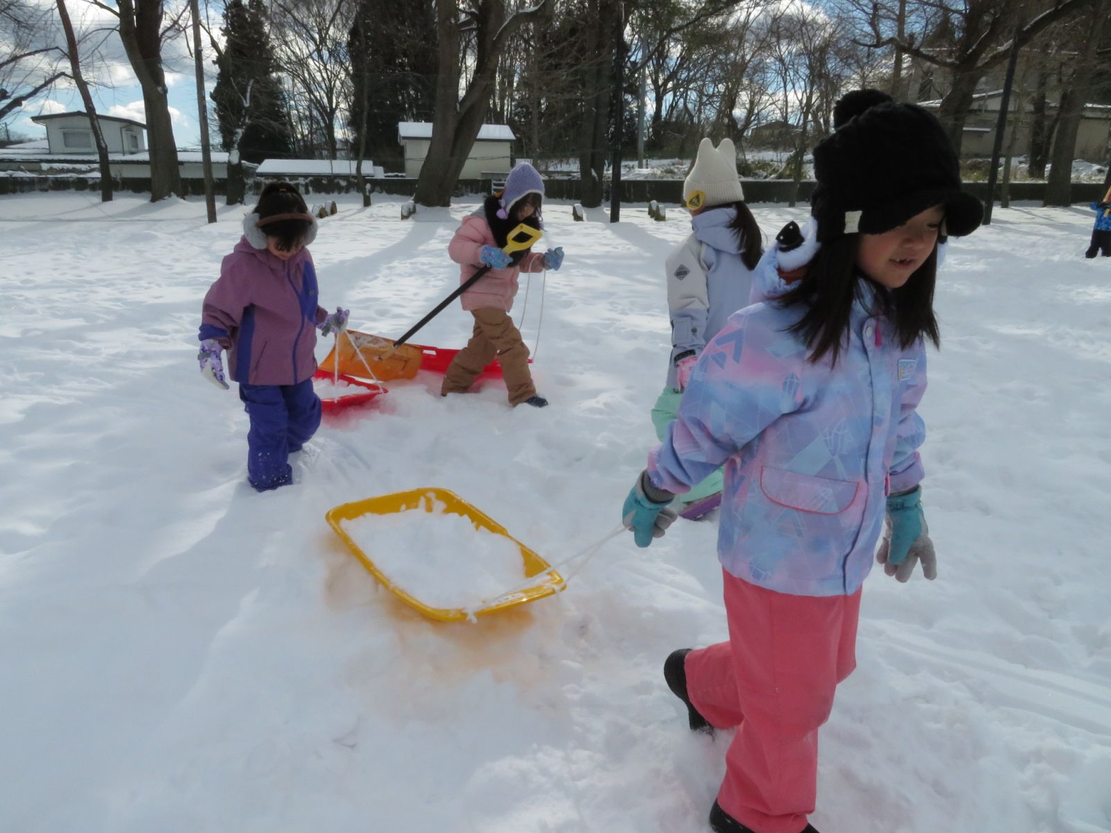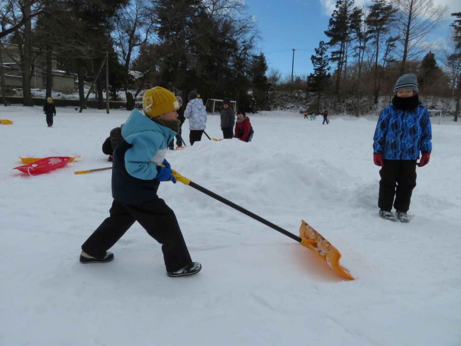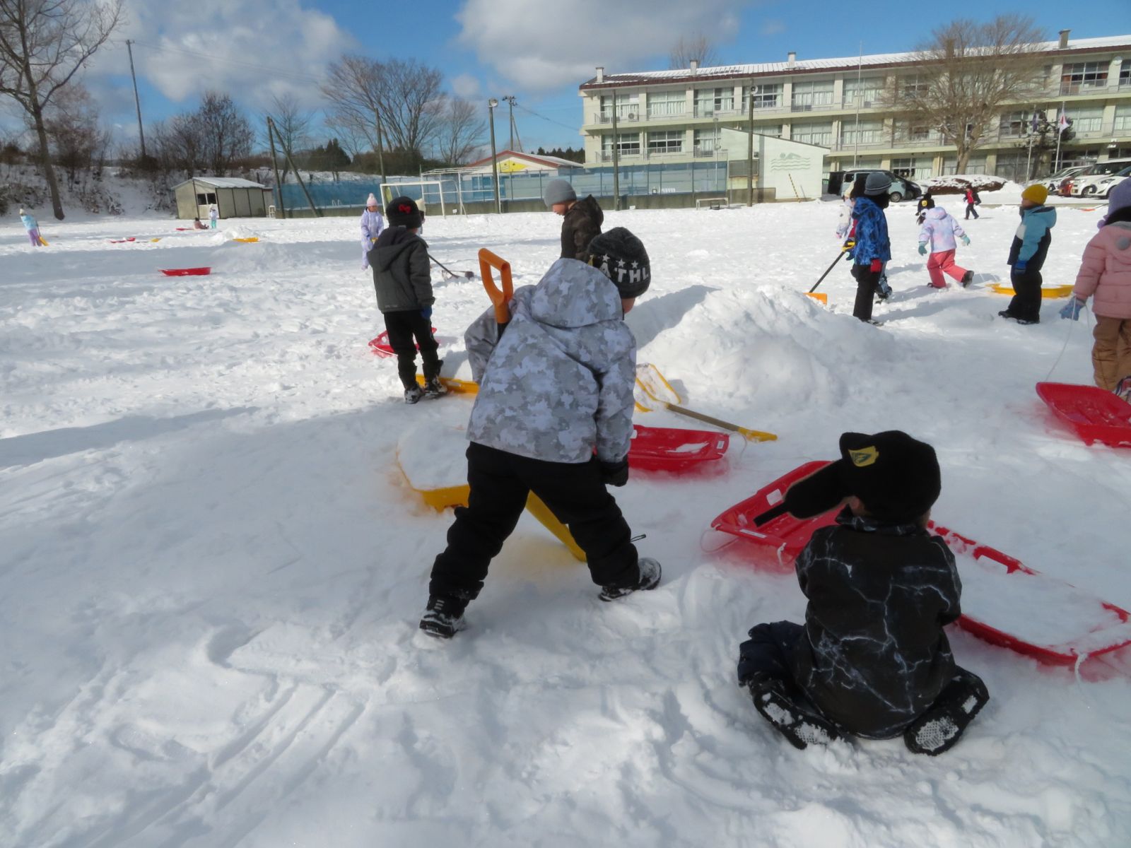 3時間目の1年生の様子です。雪をたくさん運んで