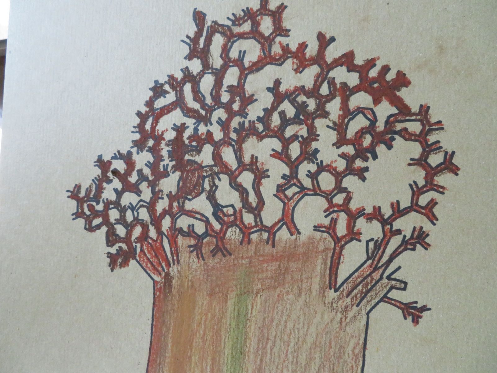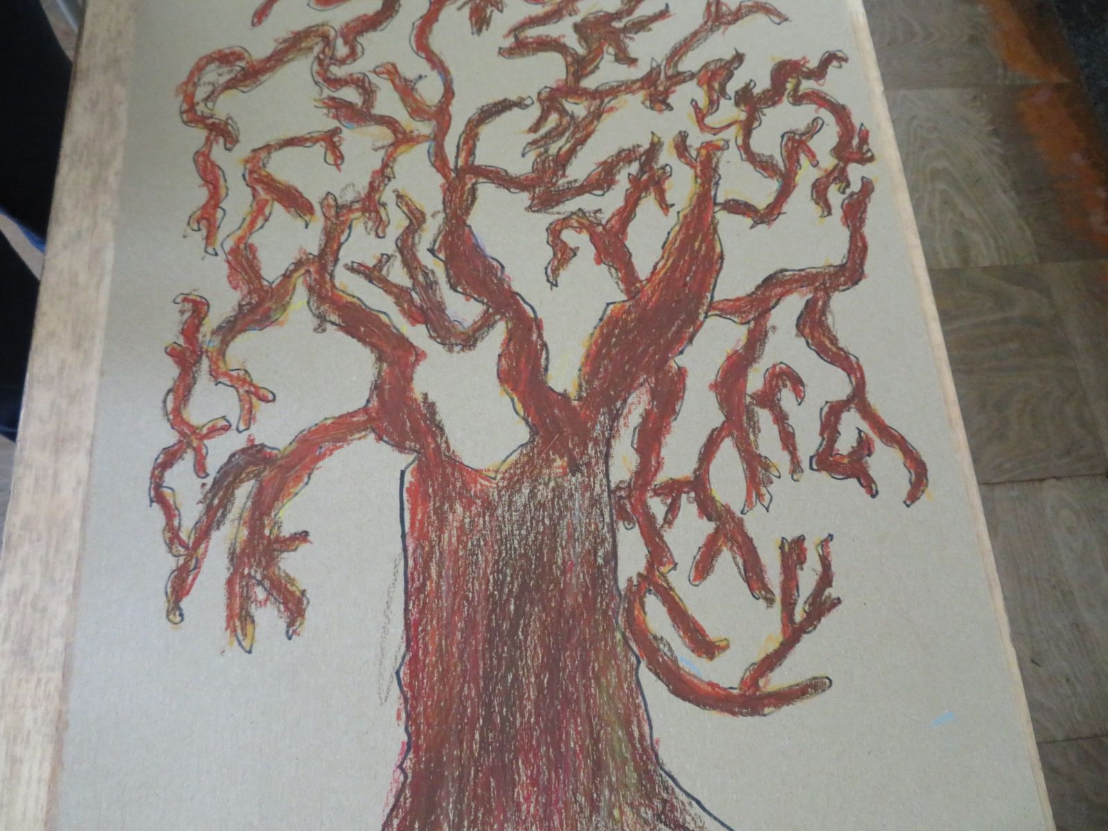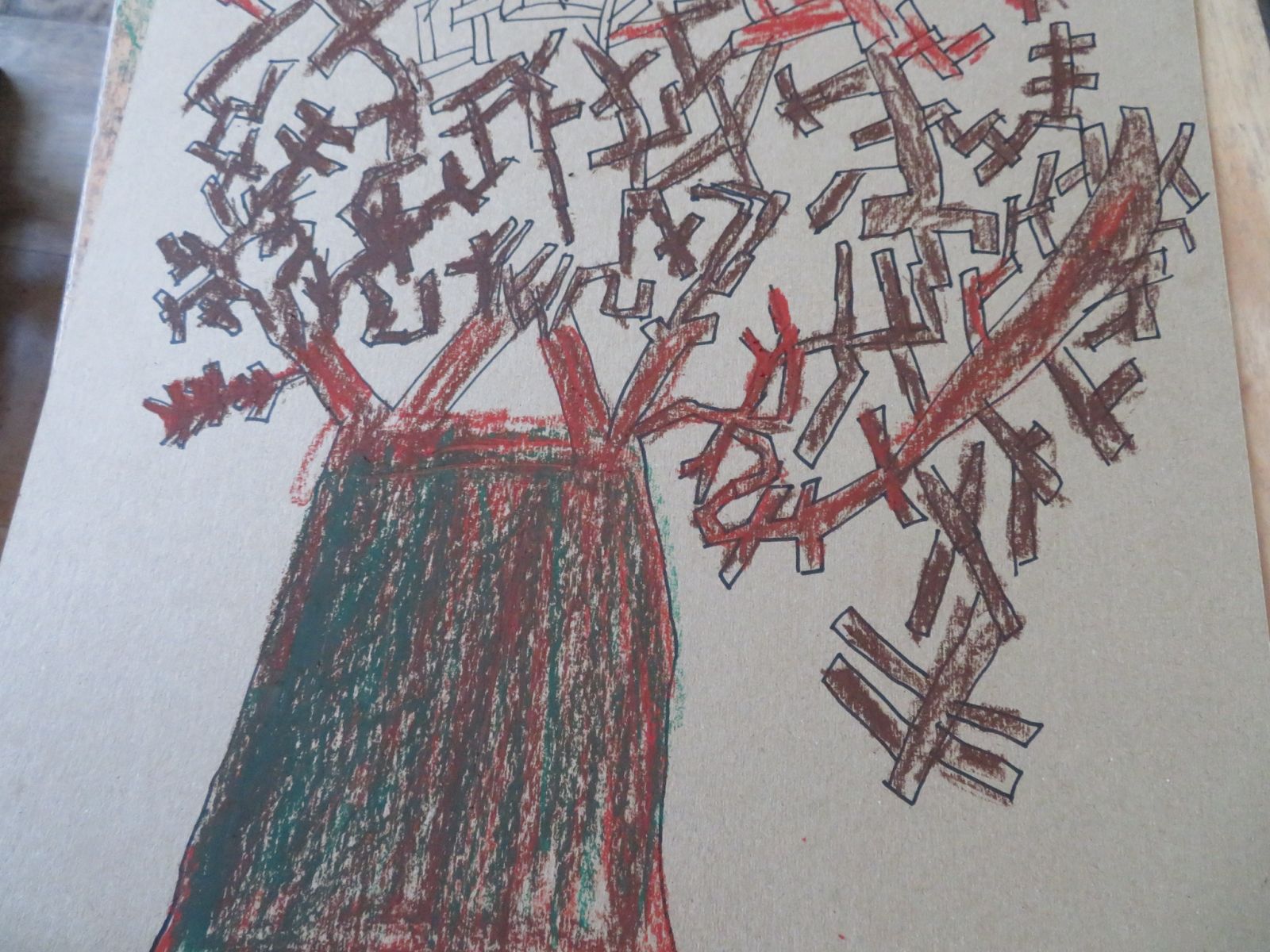 3年生になったら花をかくのかな?力強いサクラの木がいっぱいです。きっとすてきなサクラの花がいっぱい咲くことでしょう。