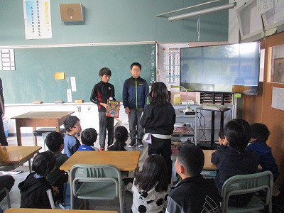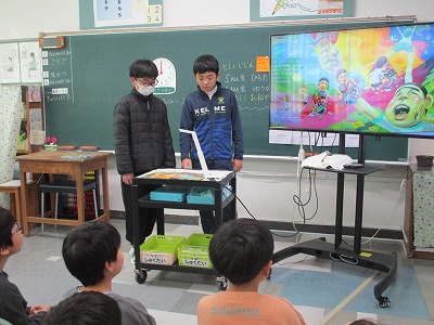1年生から4年生の各クラスへ図書委員が訪問し、自ら選んだ本を読み聞かせしました。