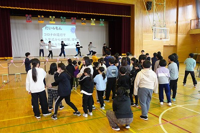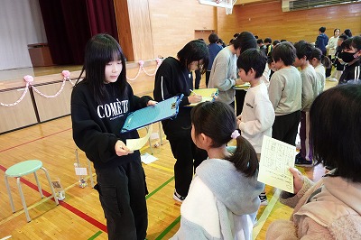 学校クイズや6年生に関するビンゴゲームを全校で楽しみました。
