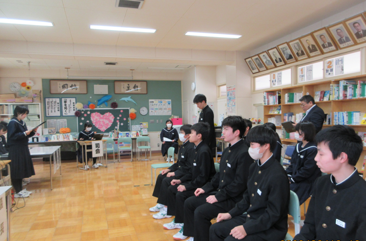 今年度最後の生徒総会が行われました。生徒会執行部、学校運営委員会、保健給食委員会から後期の活動について報告がありました。質疑・応答の際には、活動に対する要望や意見、感謝の気持ち等が述べられるなど、大変、有意義な総会となりました。