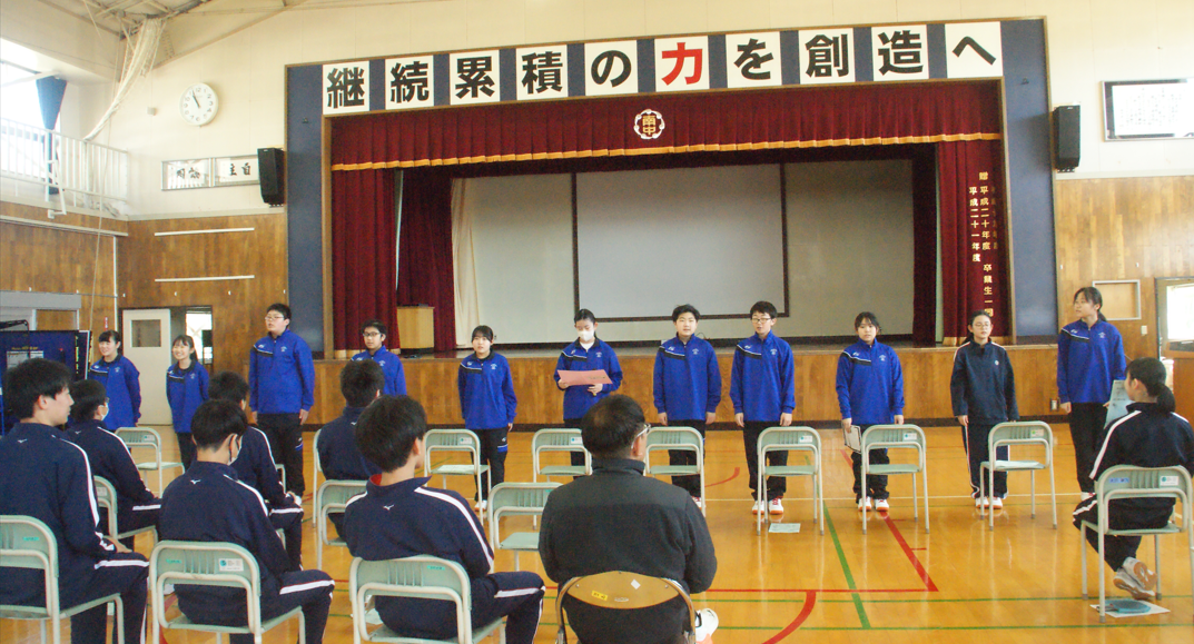 【2・3年生の皆さんにお礼の言葉を述べる1年生の皆さん】
