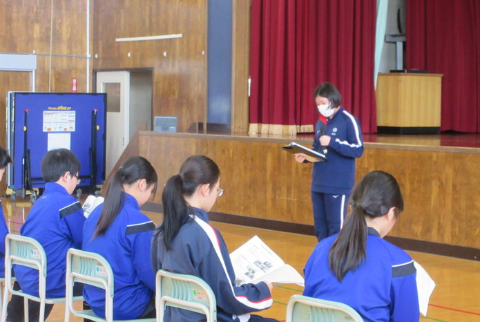 4月8日(水)の2・3校時に対面式が行われました。生徒会や委員会活動、部活動等、授業や学校行事と同じくらい重要な活動について2・3年生から1年生に対して説明されました。