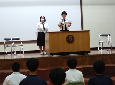 南浜中学校の新しいリーダー(生徒会役員)を決める立会演説会が行われました。各立候補者からは、南浜中学校をどのような学校にしたいか、そのために自分は何をするのか、について熱く語られ、聴衆の心に響く内容と表現でした。