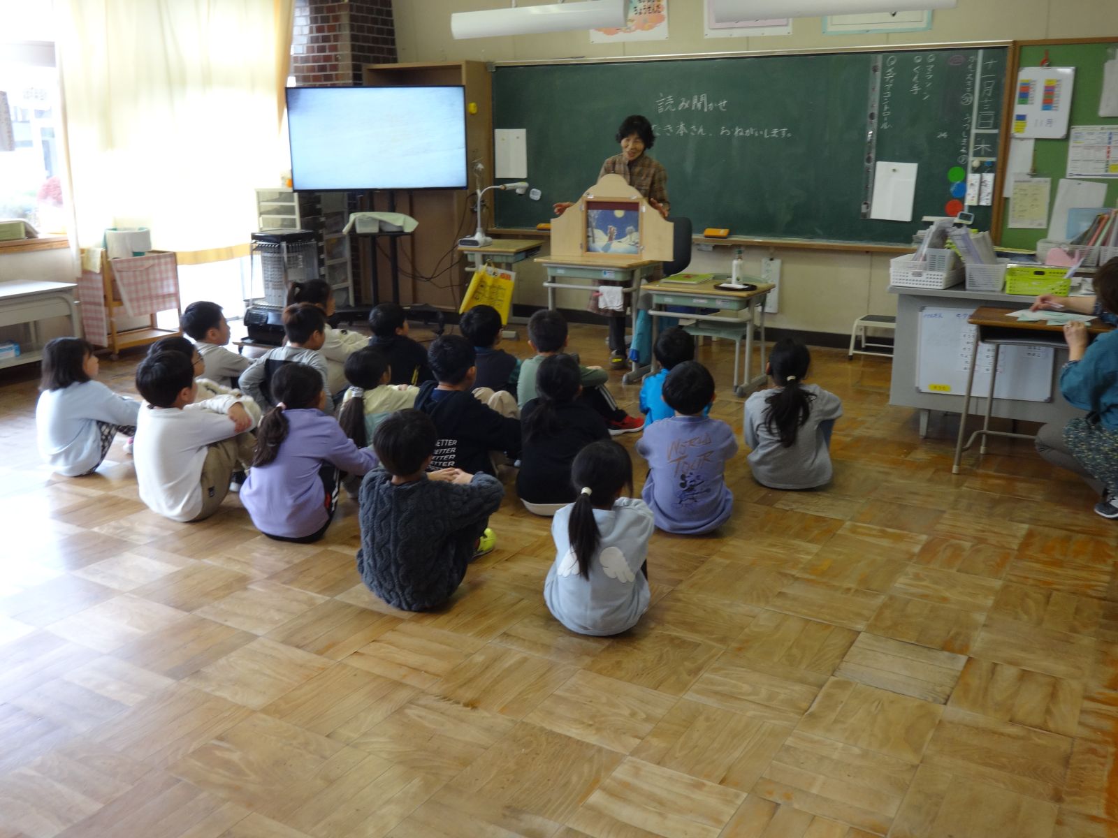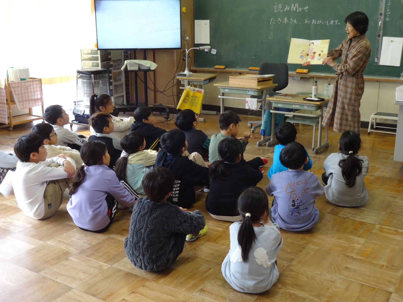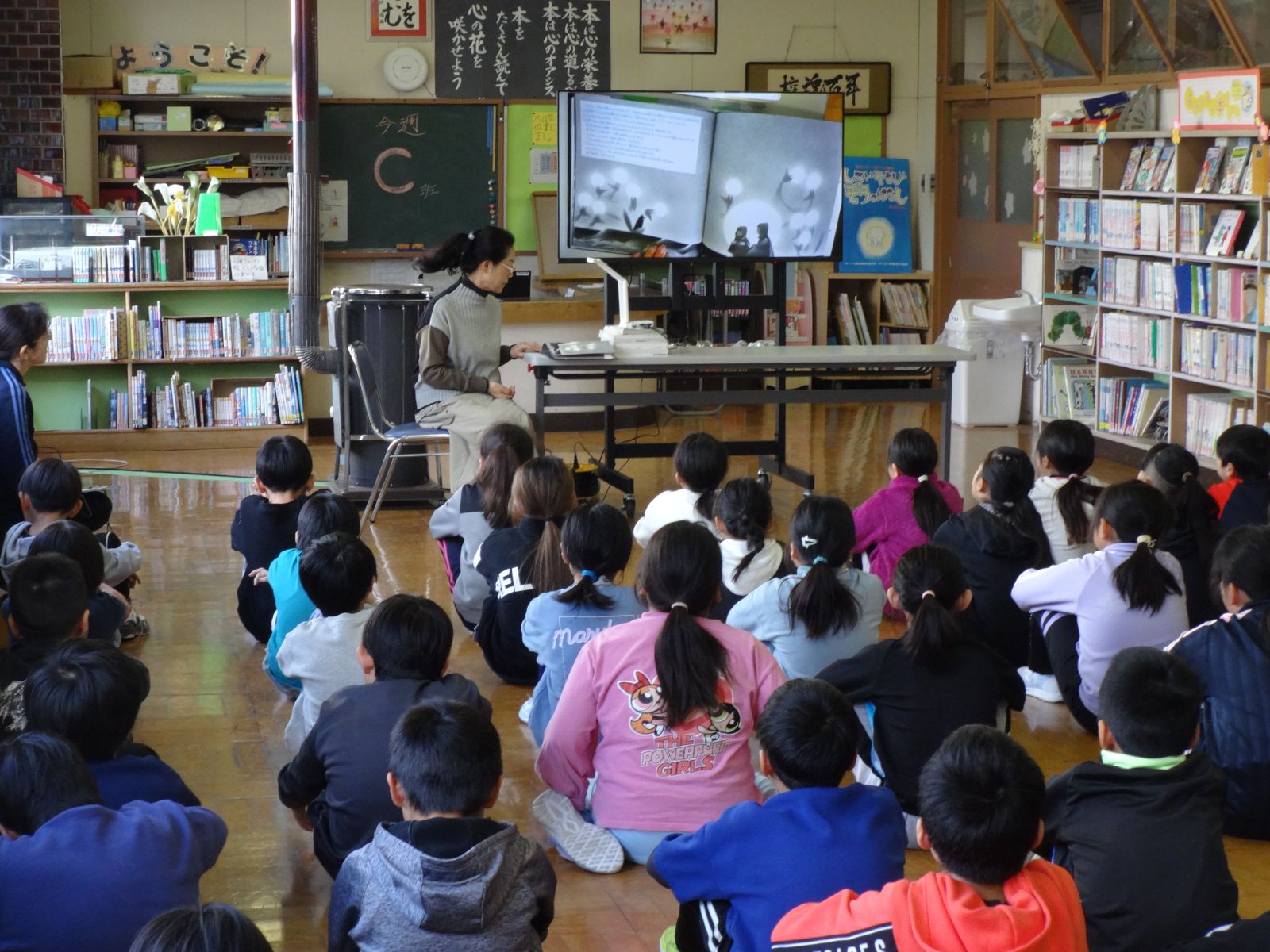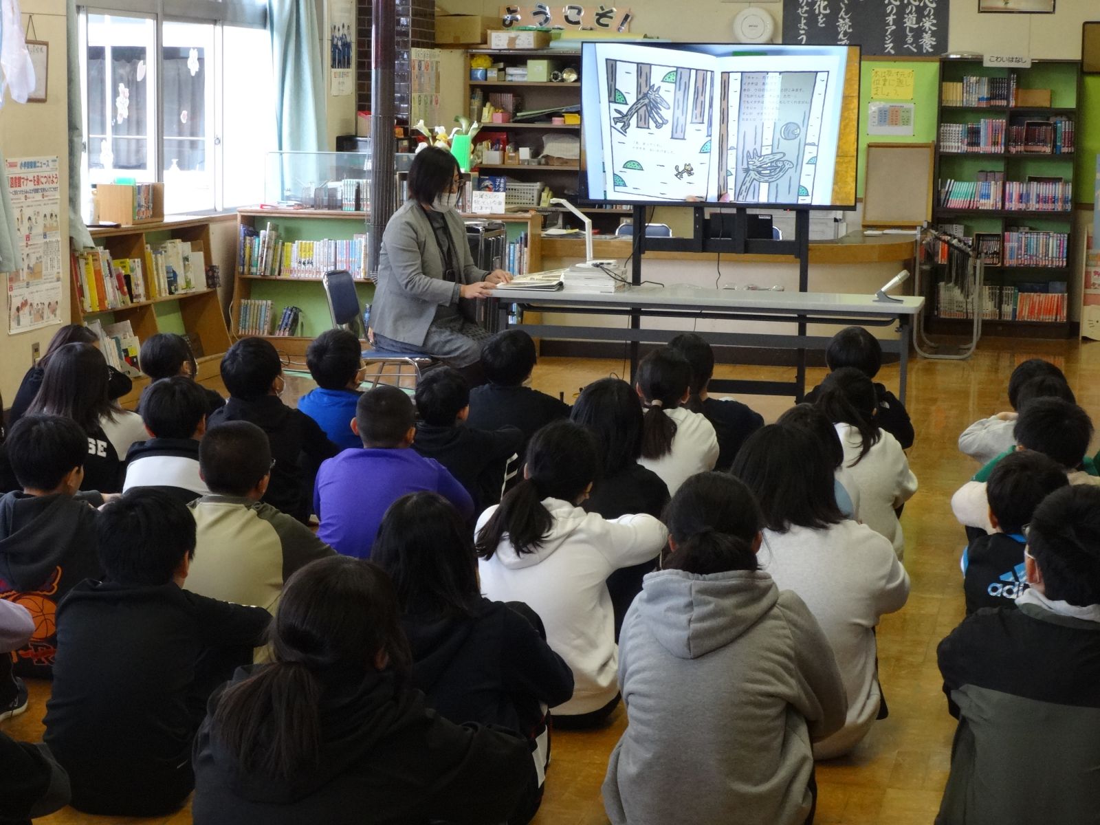 今年度、最後の回になります。2校時から1・2年、3・4年、5・6年の順で、2話ずつお話を聞かせてい