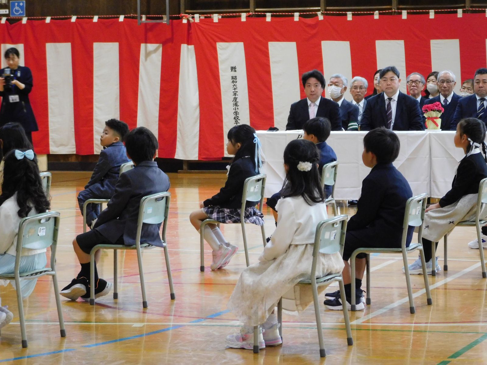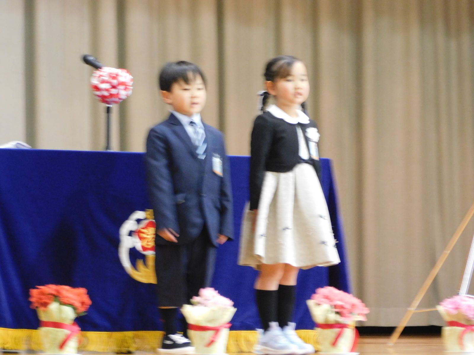始業式後は、2~4年生は下校し、5・6年生が代表となって入学式に出席しました。今年も、式辞の中で、1年生の手本となるようなしっかりした返事をしてもらいました。また、歓迎の言葉を述べた代表児童も、原稿をすべて覚えて、語り掛けるように話すことができました。大変上手で感心しました。