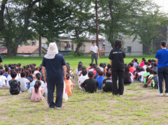 火事が起きた想定で、避難訓練を行いました。5月の訓練よりも落ち着いて行動することができました。