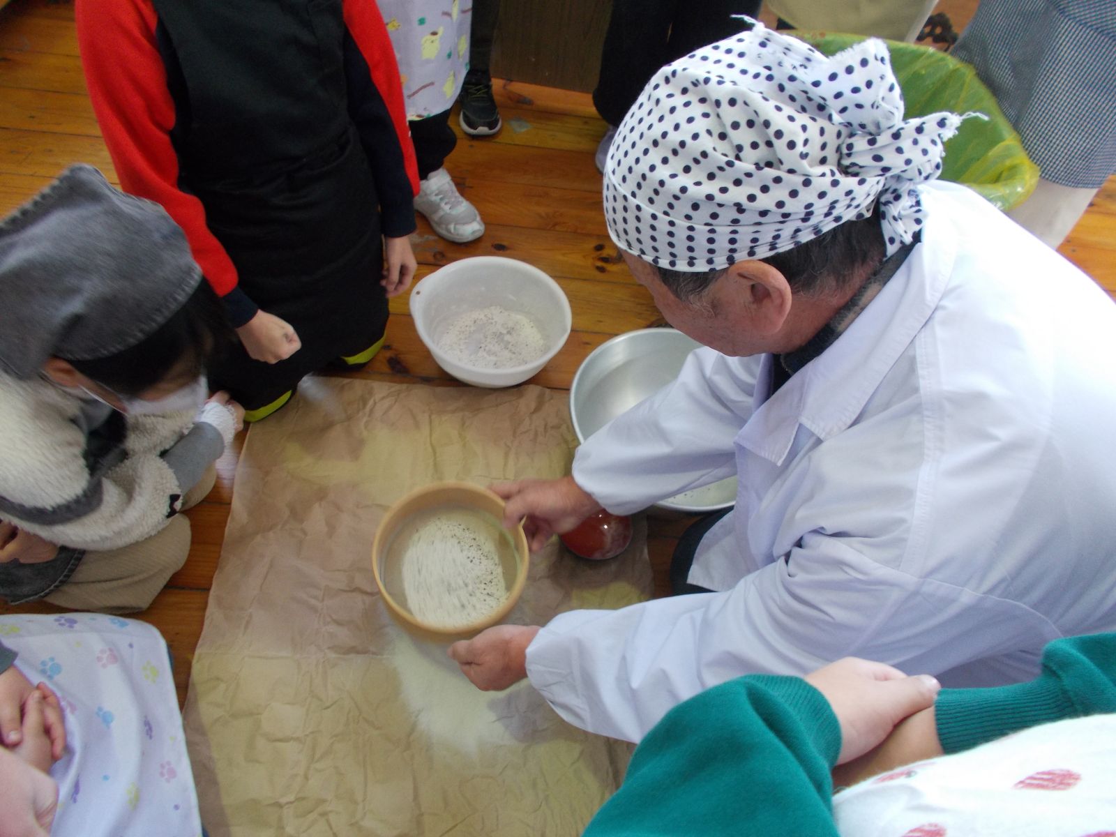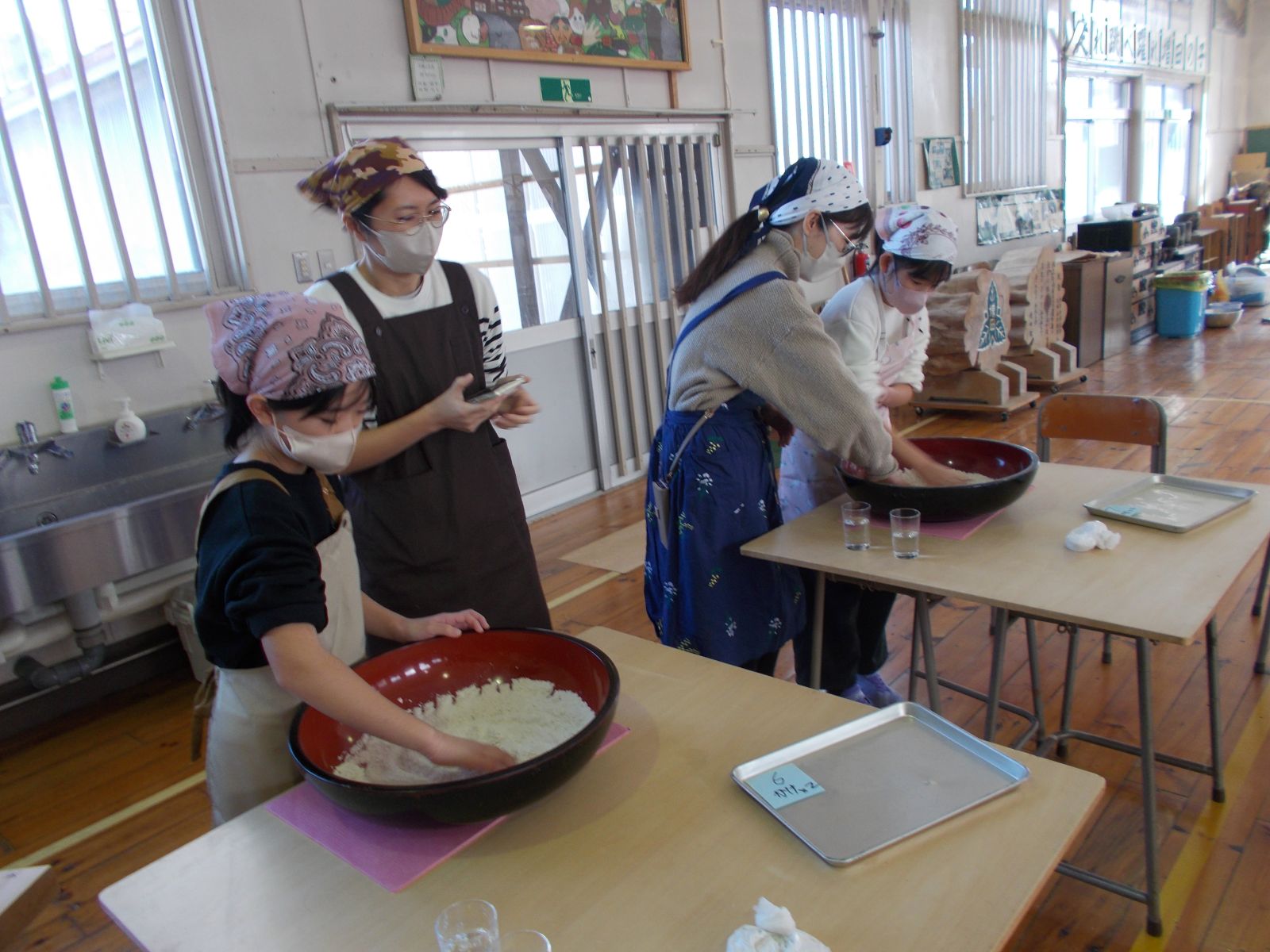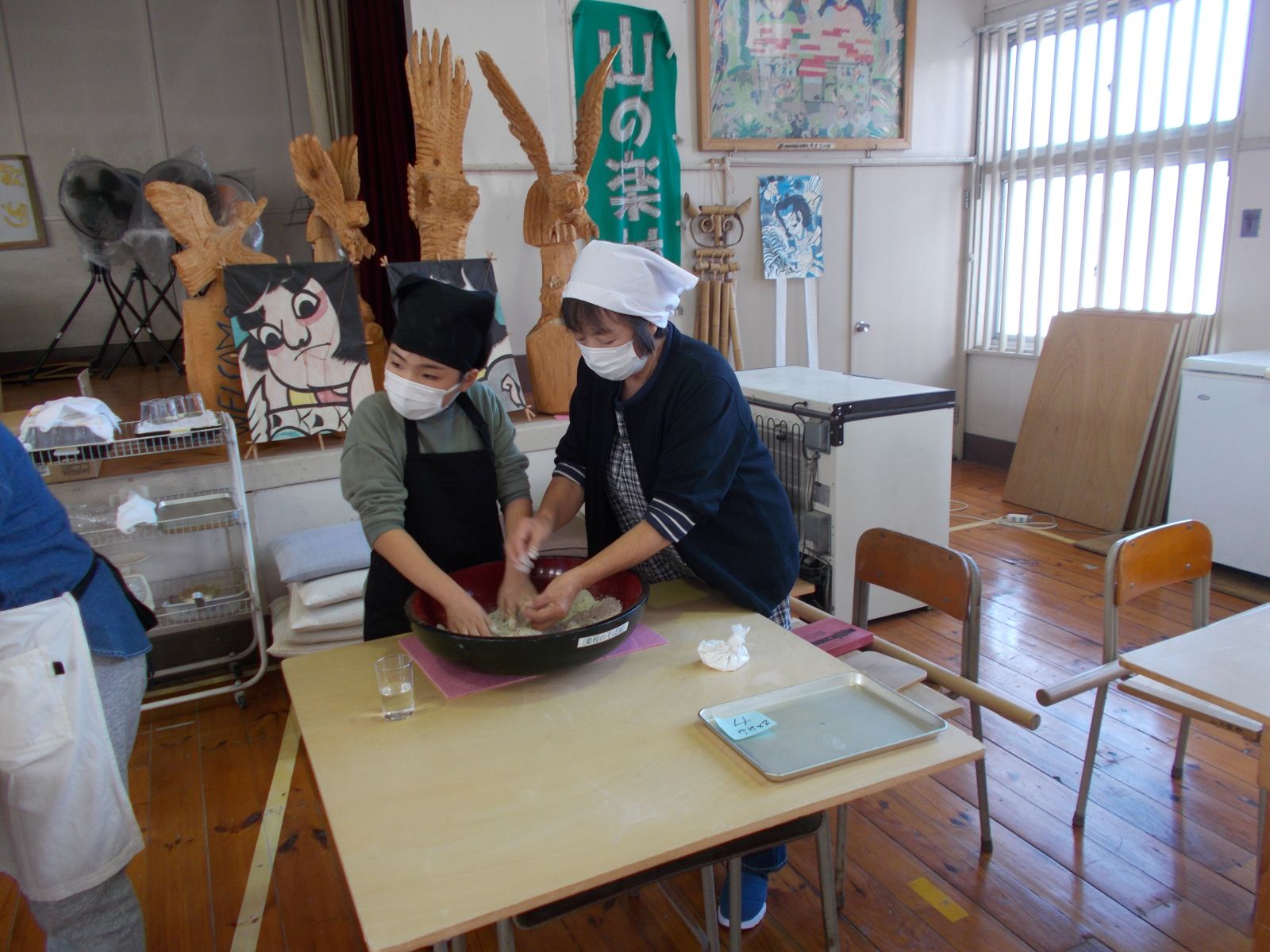 12月4日(木)、4年生がふるさと学習のそば作りで、「そば打ち」を体験しました。石臼を引いてそば粉にしたり、そば打ちをしたりして、自分のそばを作りました。そして、完成したそばをおいしくいただきました。とても楽しい時間でした。