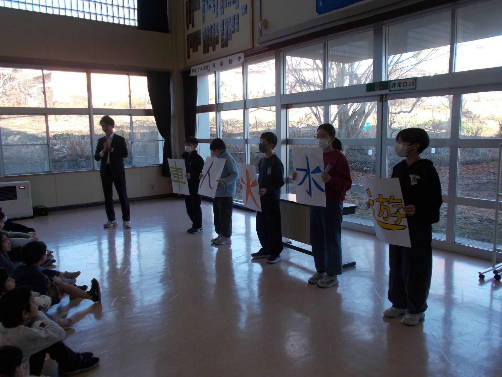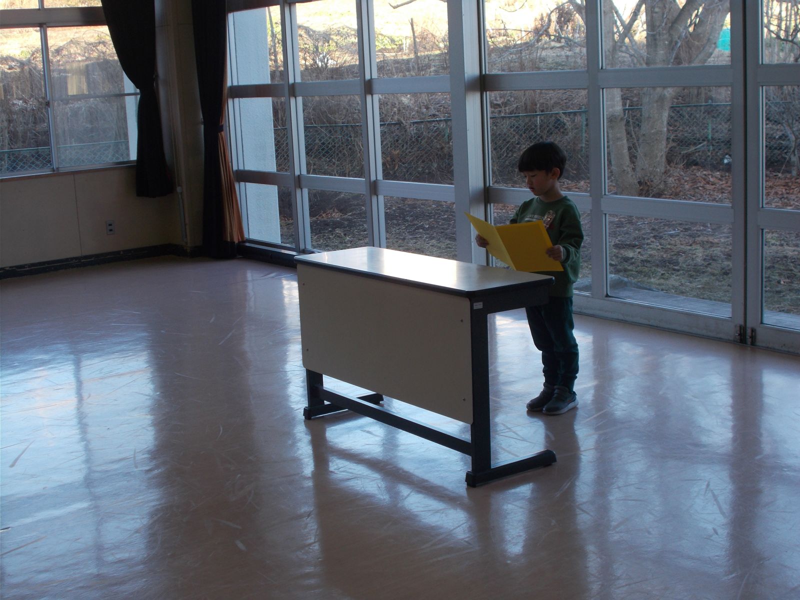 12月23日、ホールにて2学期終業式を行いました。3人のお友だちが、2学期がんばったことや冬休みにがんばりたいことについて、堂々と発表してくれました。命を大事にしながら、楽しい冬休みにしてほしいと思います。