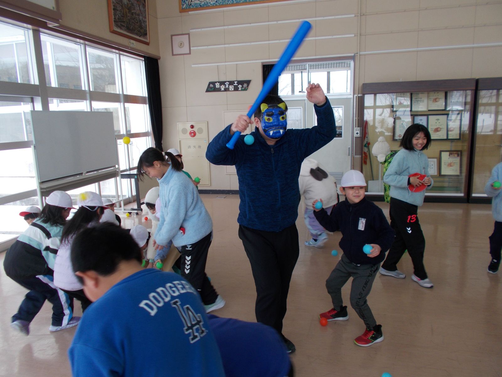 2月3日、節分の日の昼休み、ホールに鬼が出現しました。「