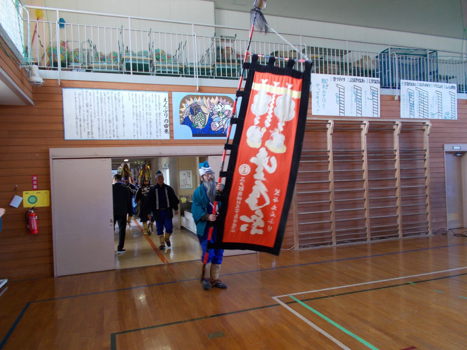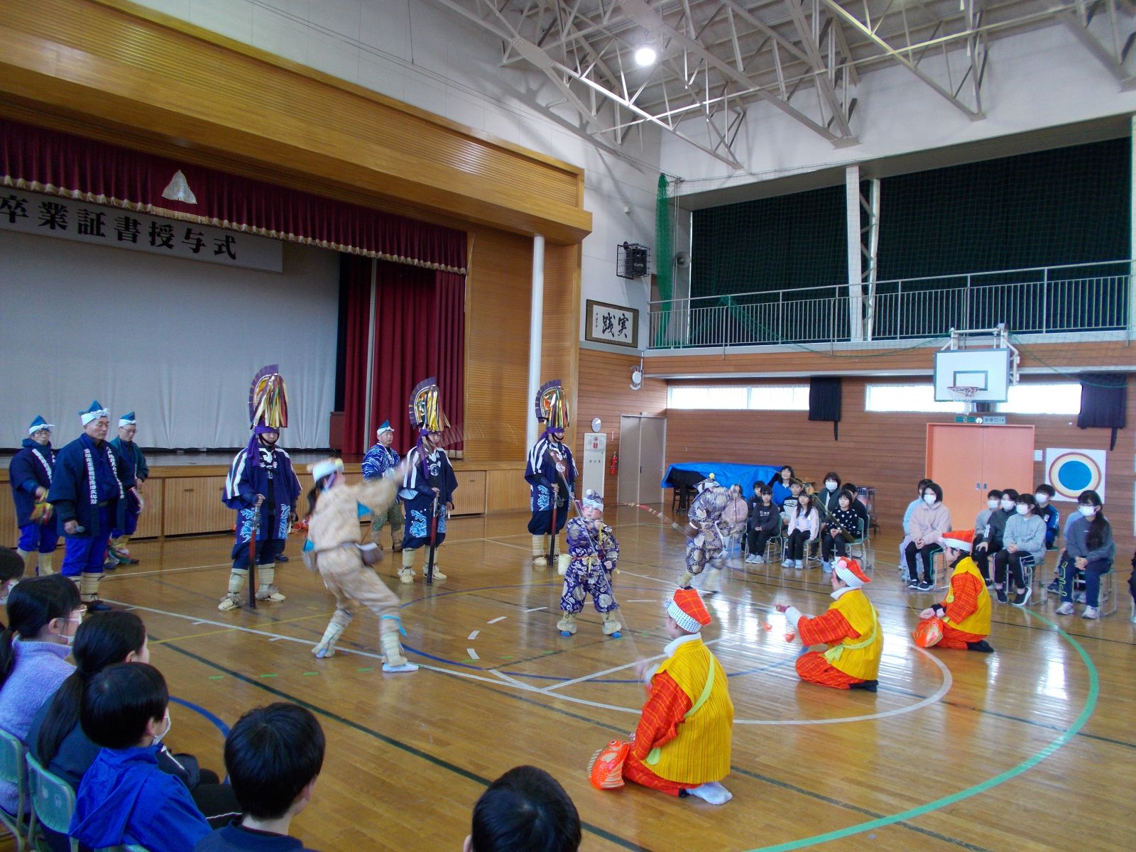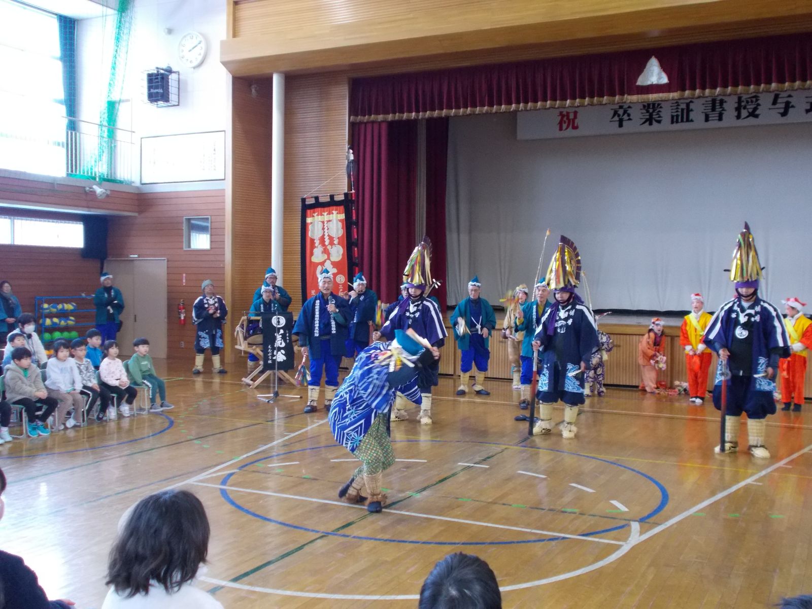 2月19日(木)の午後、地元のえんぶり組が来校し、体育館でえんぶりを披露してくださいました。子どもたちは、興味をもって、鑑賞することができました。
