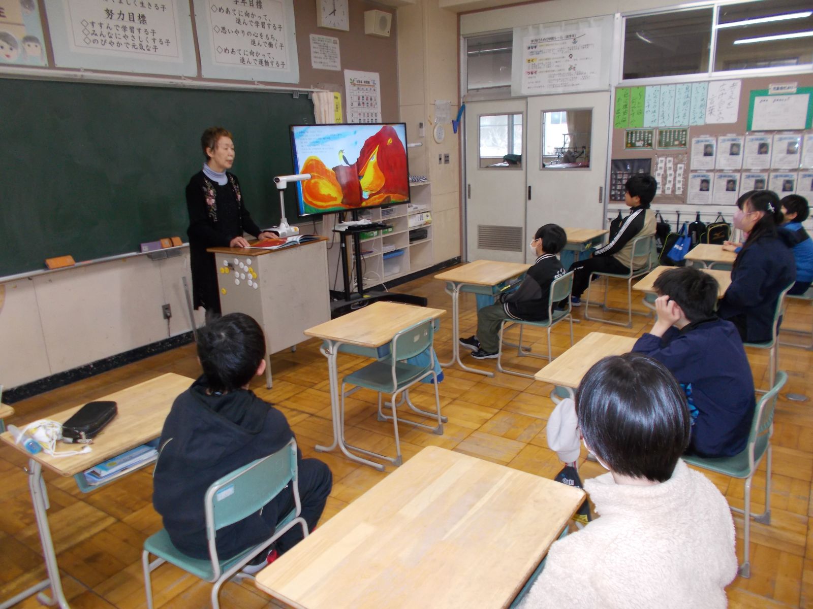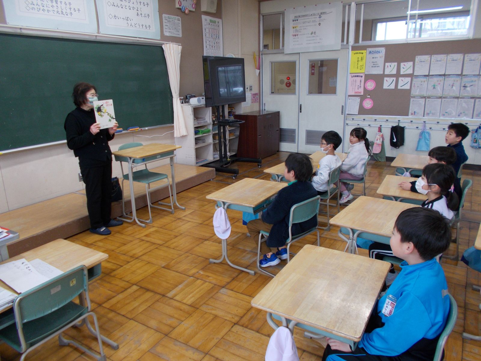3月3日(火)の朝の時間、ボランティアの方を招いて、1・3・5年生が各教室で、読み聞かせをしていただきました。子どもたちは、集中してお話を聞くことができました。