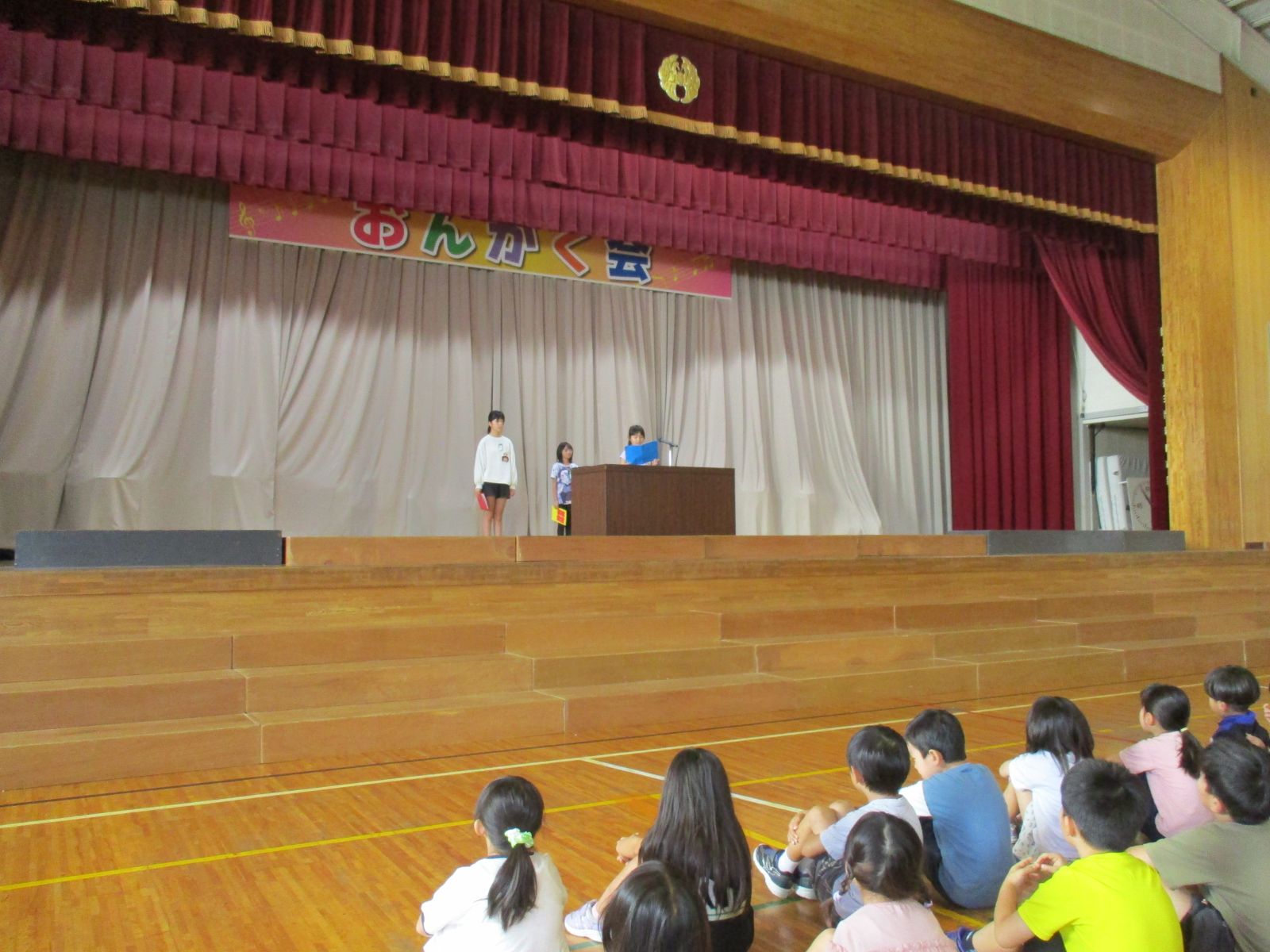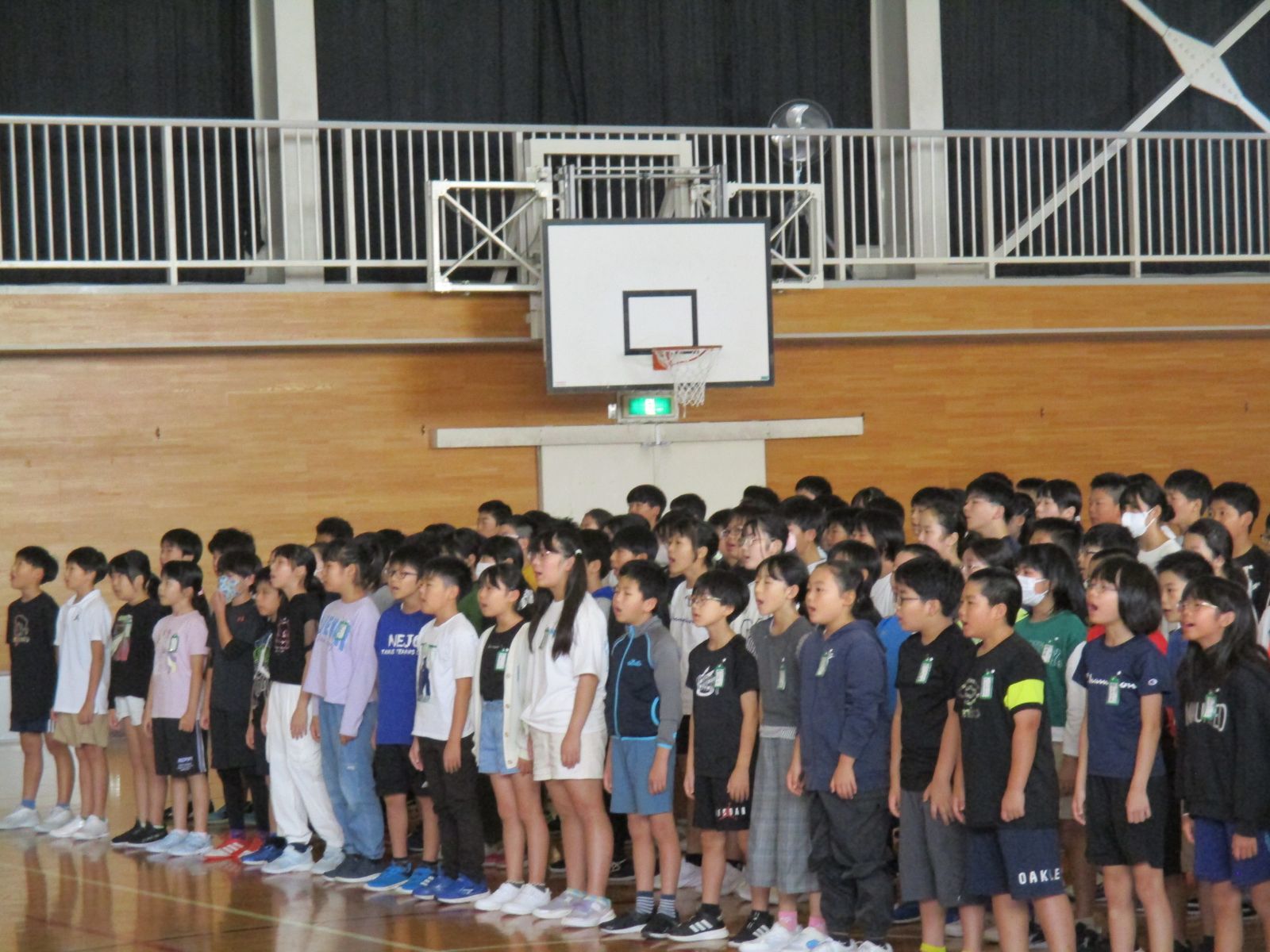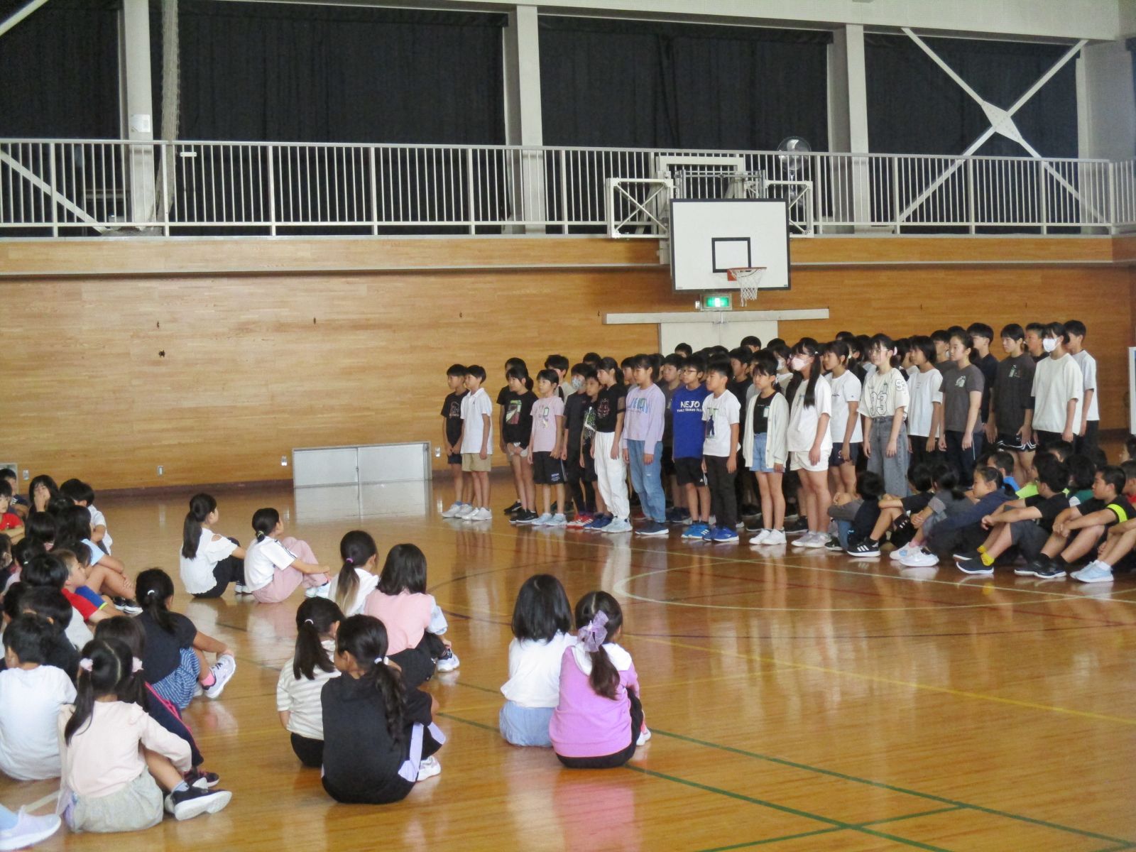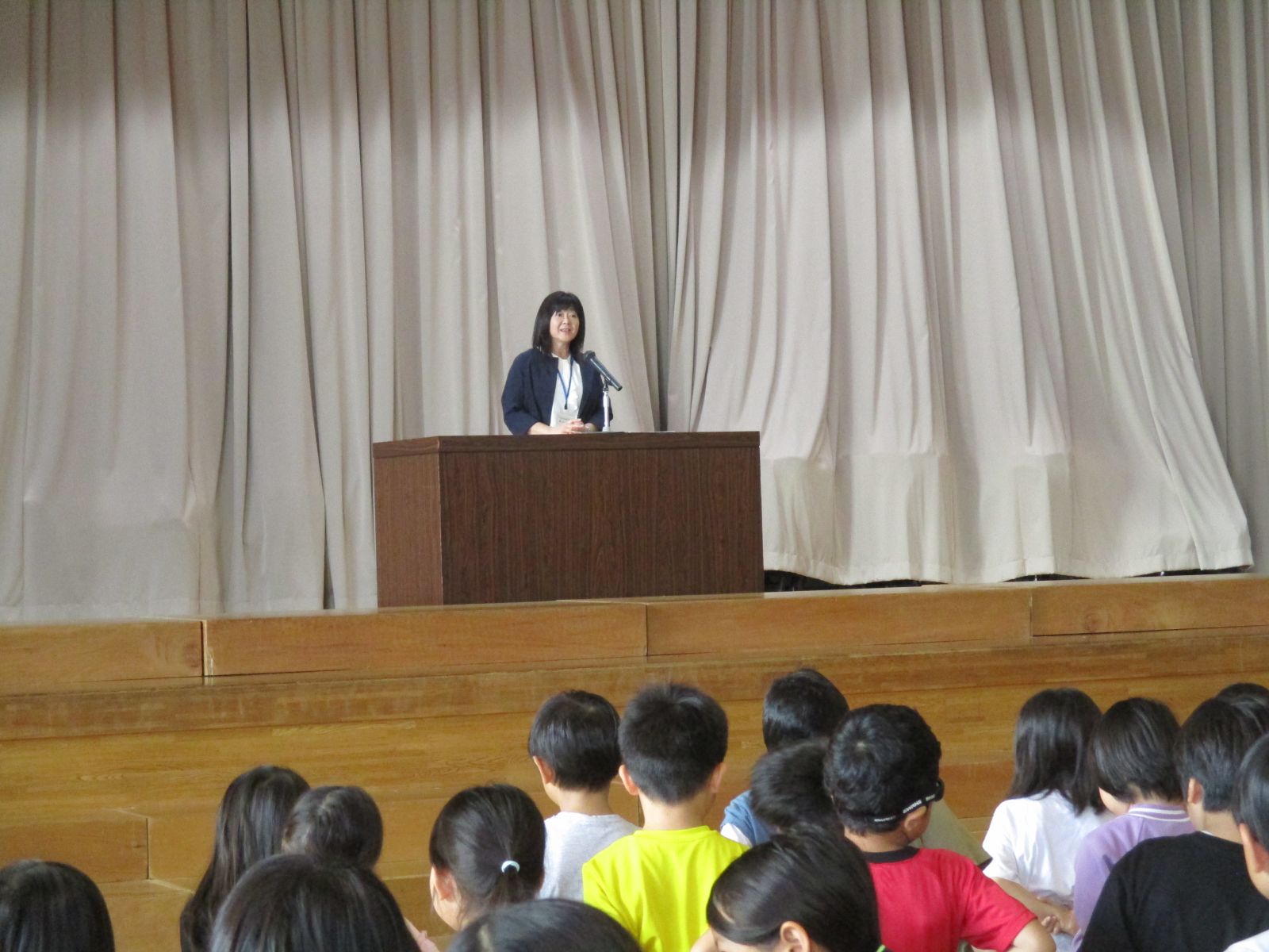 1年、3年、5年の代表児童が、前期に頑張ったことやできるようになったことを発表しました。その後校長先生から全校の頑張りや各学年の素敵なところ、成長できたところについてお話がありました。