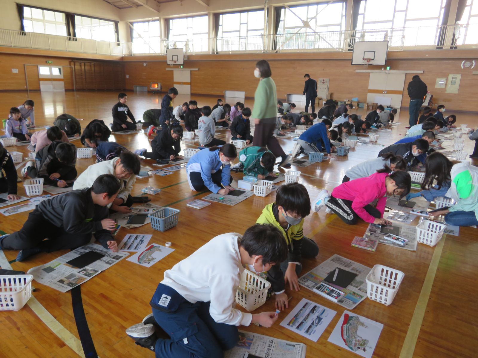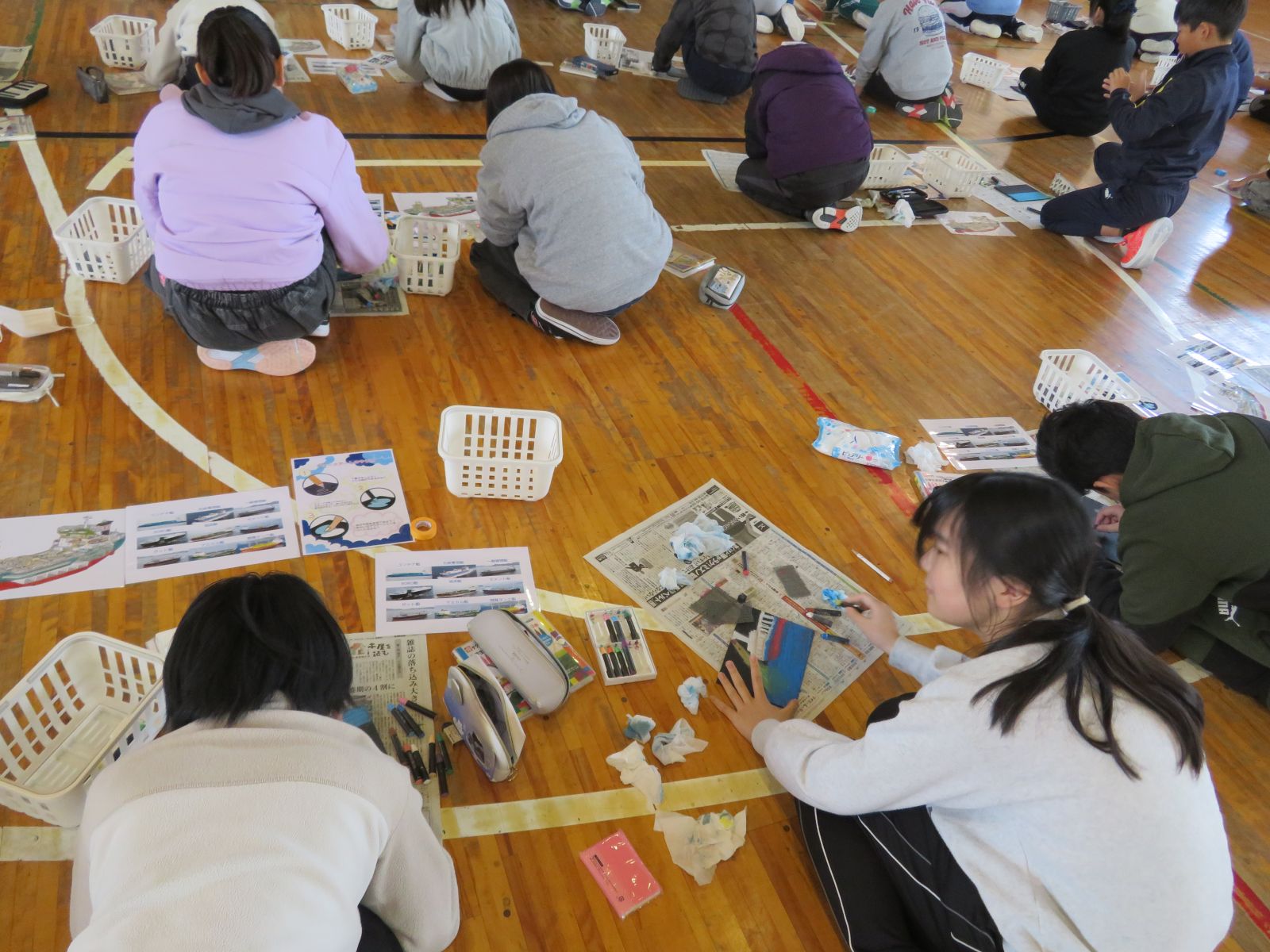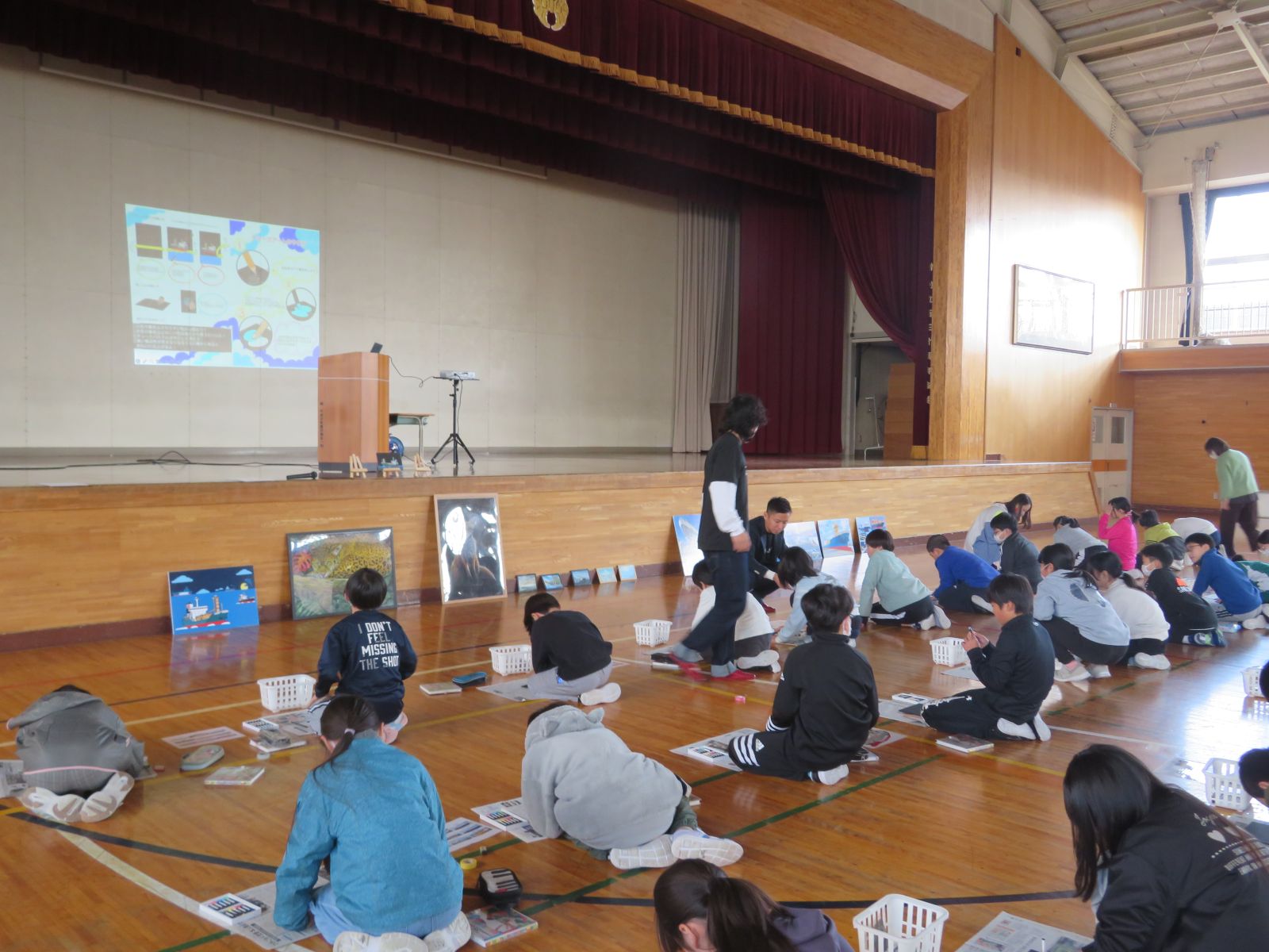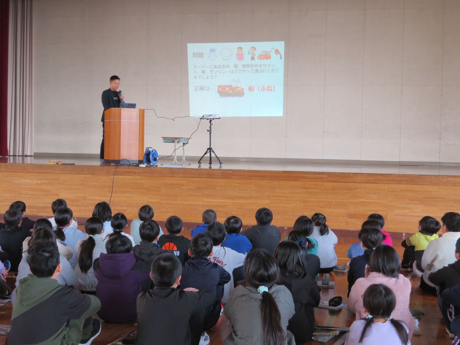 11月25日(火)、今日は、東北内航海運組合様とYUU.CONNECT様を迎えて4年生と5年生対象に「チョークアートで知る!内航海運の世界」事業出前授業を行いました。