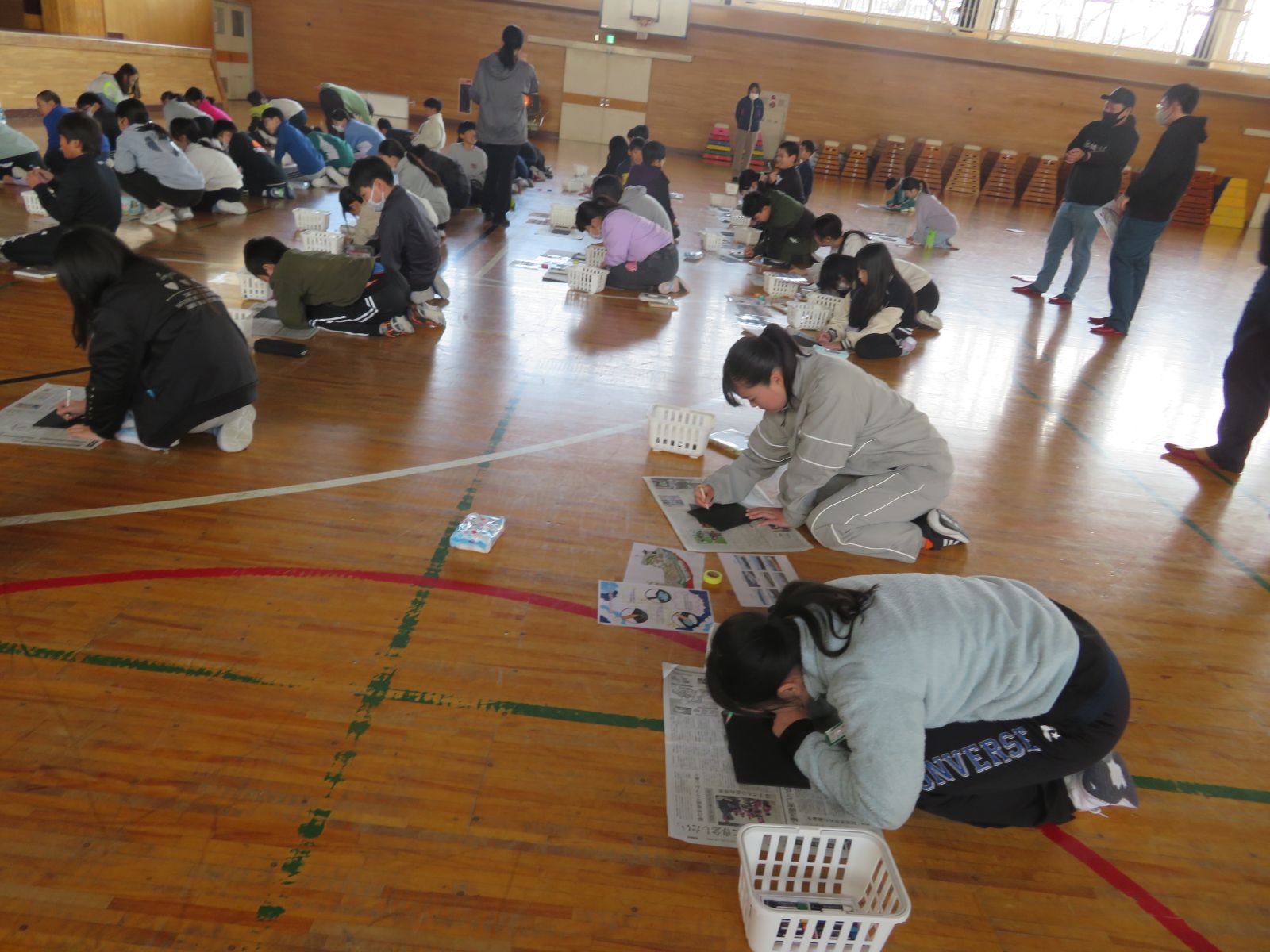 今回は、8班が正門前で、17班が高学年玄関前でがんばりました。