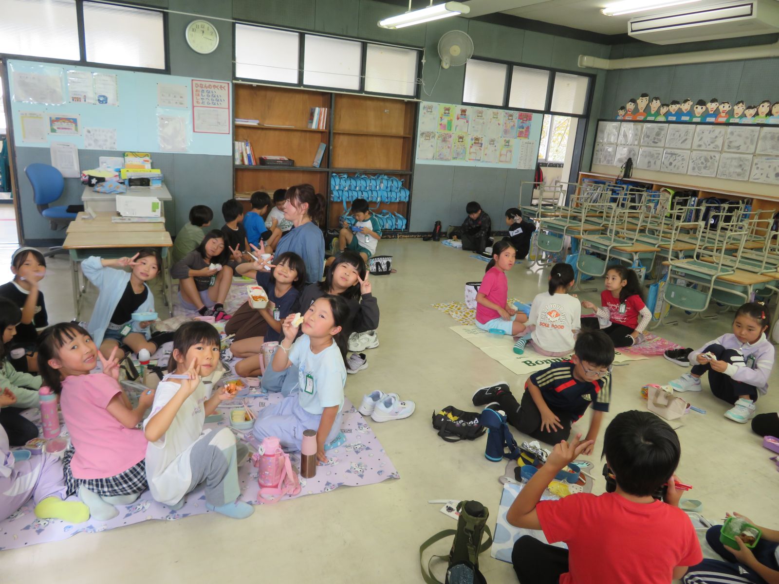 お弁当の時間になると、あっという間に食べ終わる子やお弁当の自慢をしてなかなか食べ終わらない子など、楽しい時間になりました。朝早くからお弁当を作ってくださったおうちの皆様、ありがとうございました。