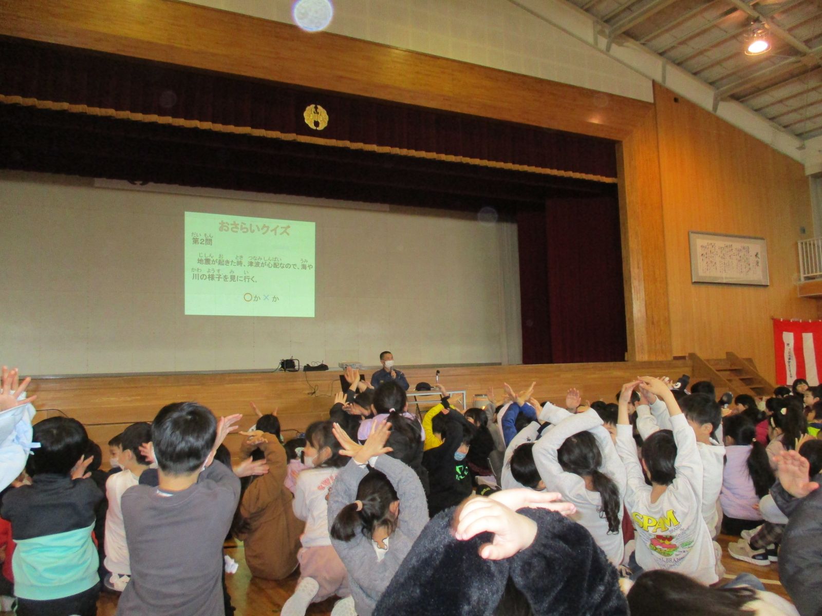 地震や津波の怖さだけではなく、自分の命を守るために大切な合言葉や身を守る方法を教えていただきました。1年生から6年生まで、わかりやすいお話に、いつも以上に真剣に話を聞いて学ぶことができました。
