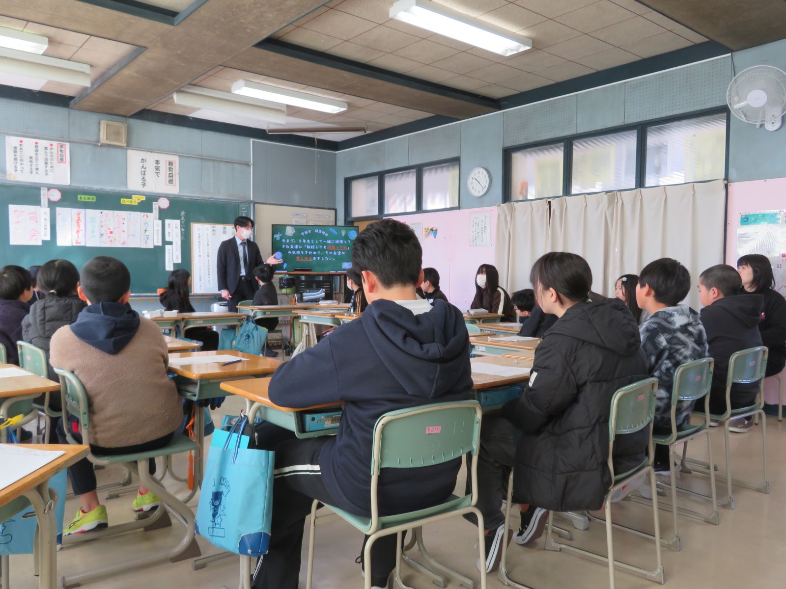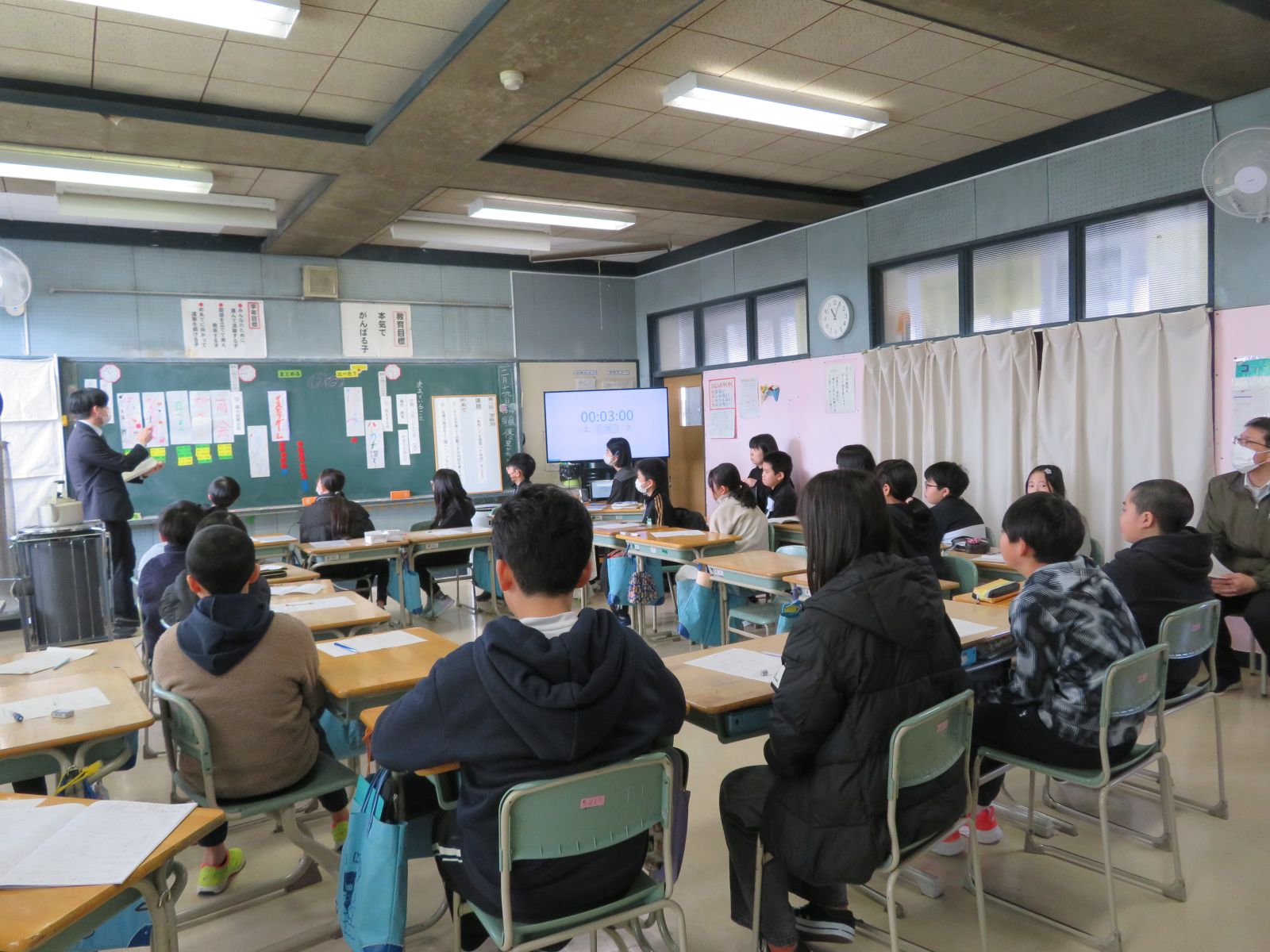 5年2組の特別活動の授業では、活発な話し合いが行われ、子どもたちが活躍しました。校内の先生方に見守られ、これまで研修を積み重ねてきた初任者も、少し安心した様子でした。