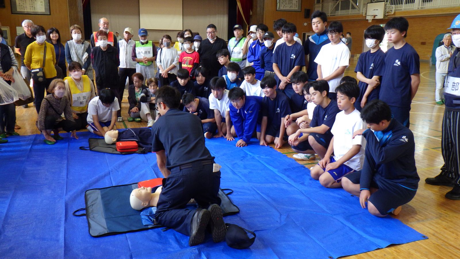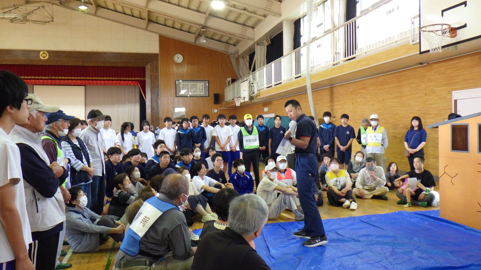 10月4日(土)に本校体育館で、根城地区自主防災訓練が行われました。