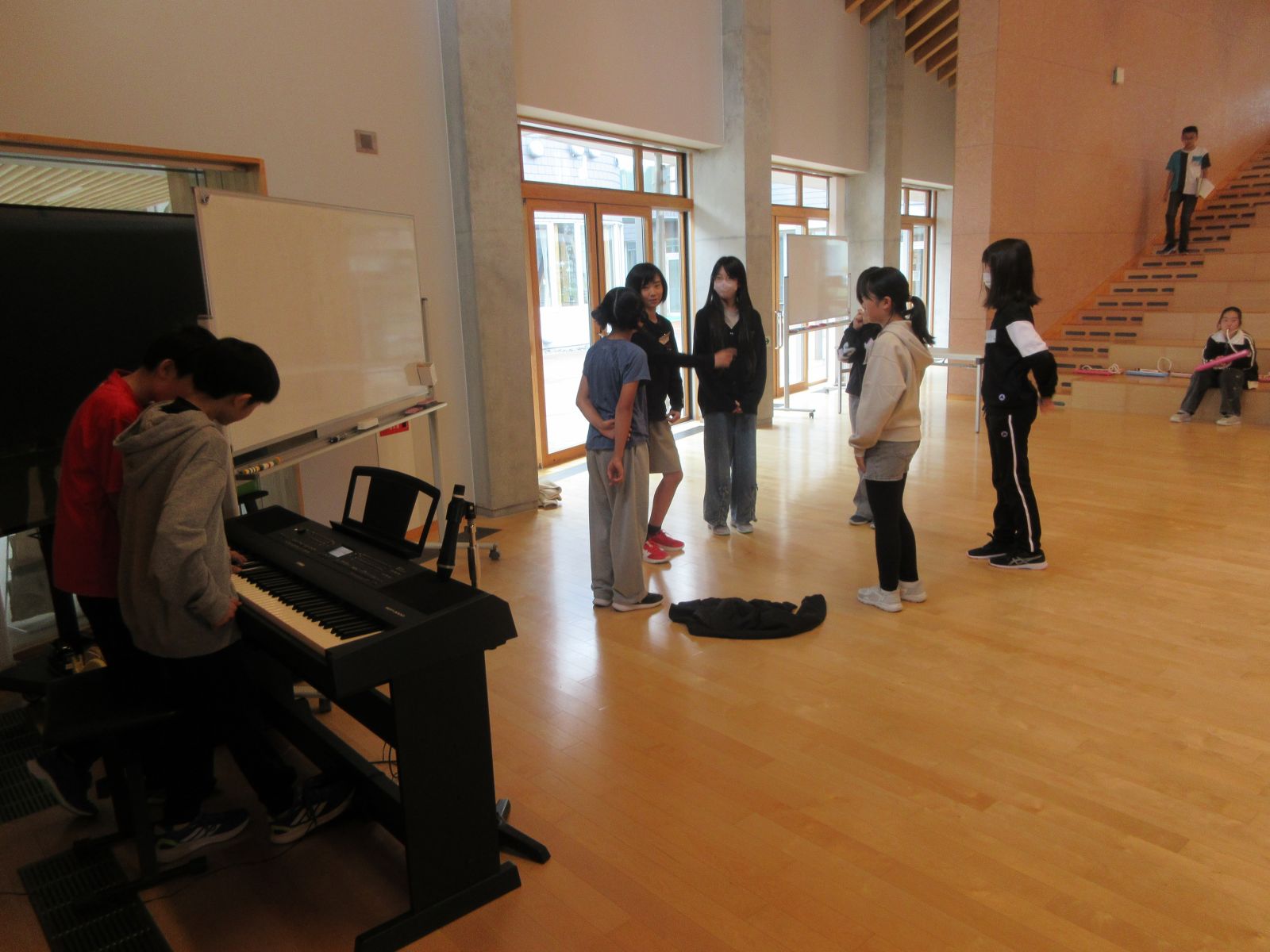 予行の動画を見返し、よりよくするために工夫した練習を行ったり、合奏と劇のタイミングを確認したりしました。