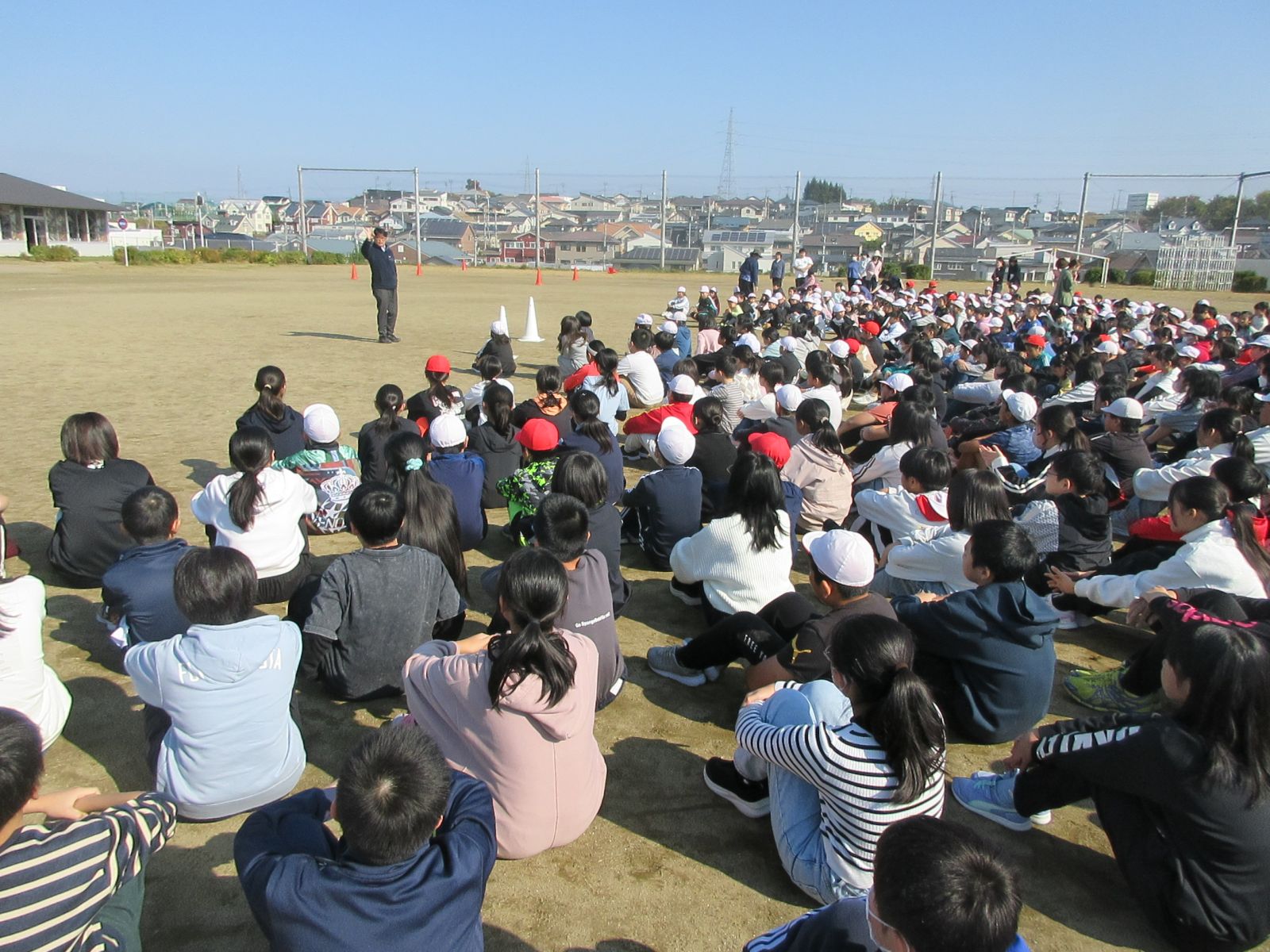 10月30日(木)、今年度3回目の避難訓練を実施しました。 今回は、休み時間中に地震が発生したことを想定した訓練です。 これまでの訓練とは異なり、自分で安全な行動を判断し、実行することが求められました。 校庭で遊んでいた児童もいましたが、避難指示から全員が校舎の外へ避難し終えるまでの時間は、わずか1分52秒でした。 一人一人が落ち着いて、適切な判断をもとに行動できた成果です。 ご家庭でも、登下校中に地震が起きた場合の行動について、ぜひ話し合ってみてください。