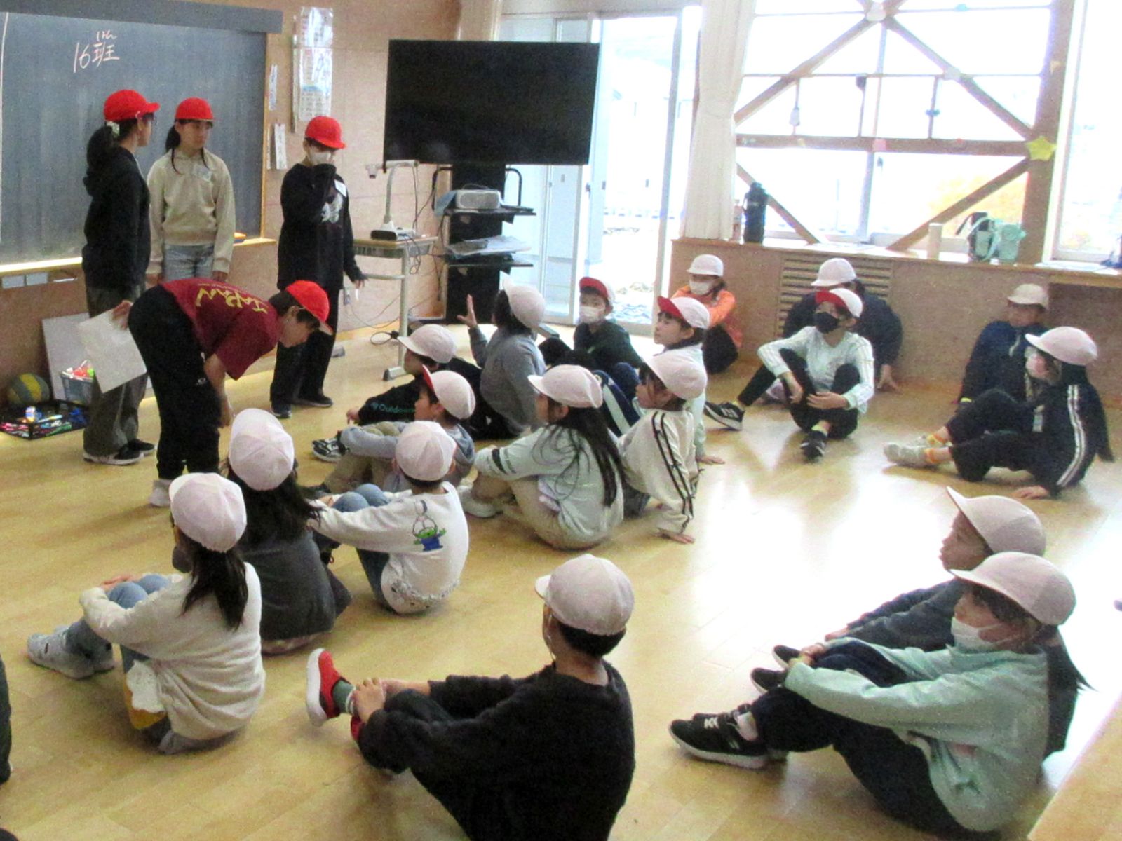 6年生が企画した遊びを、縦割り班に分かれて楽しみました。