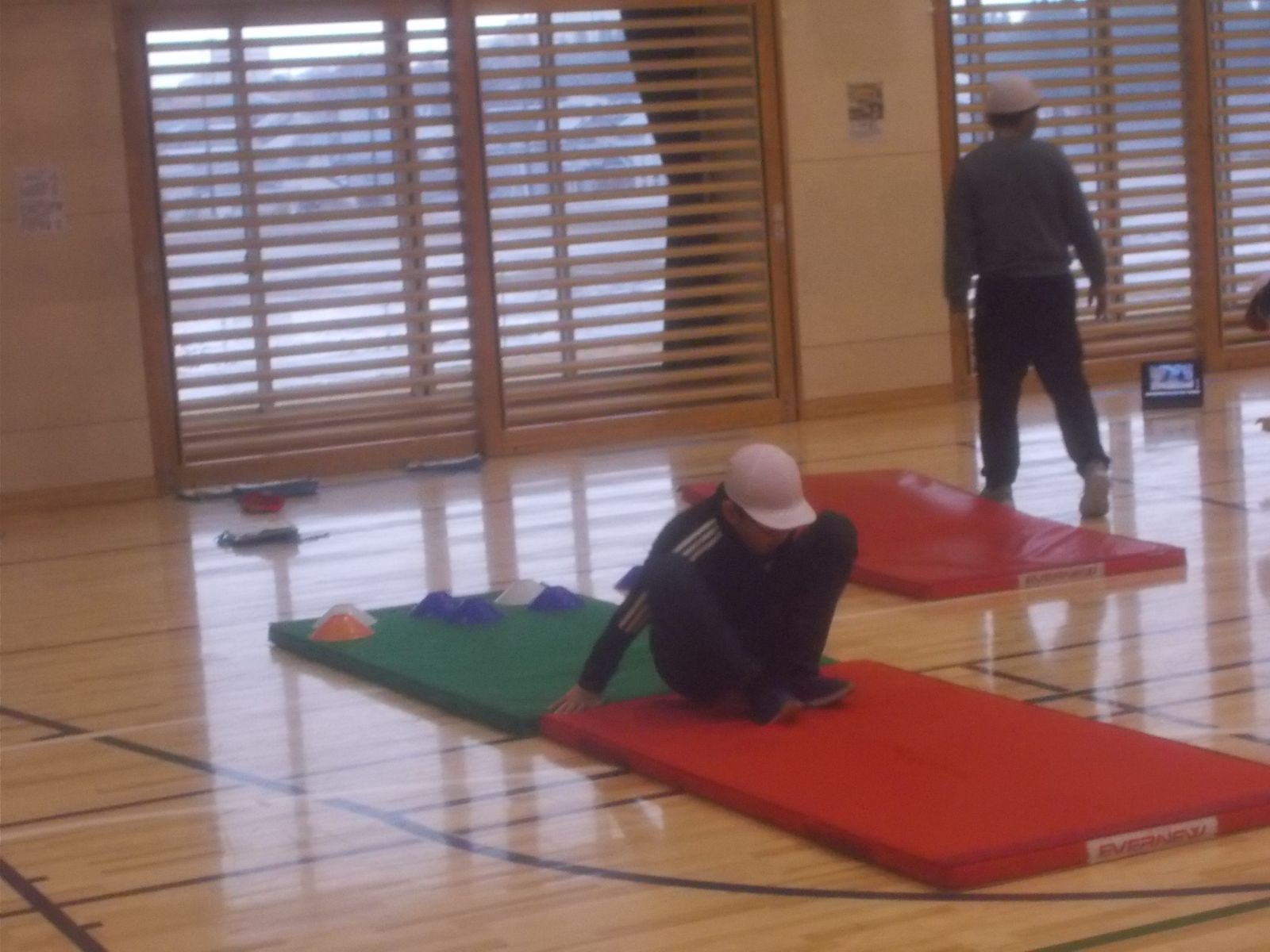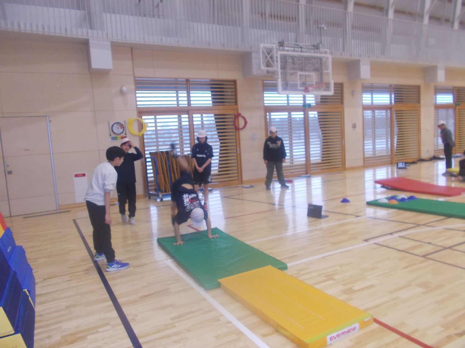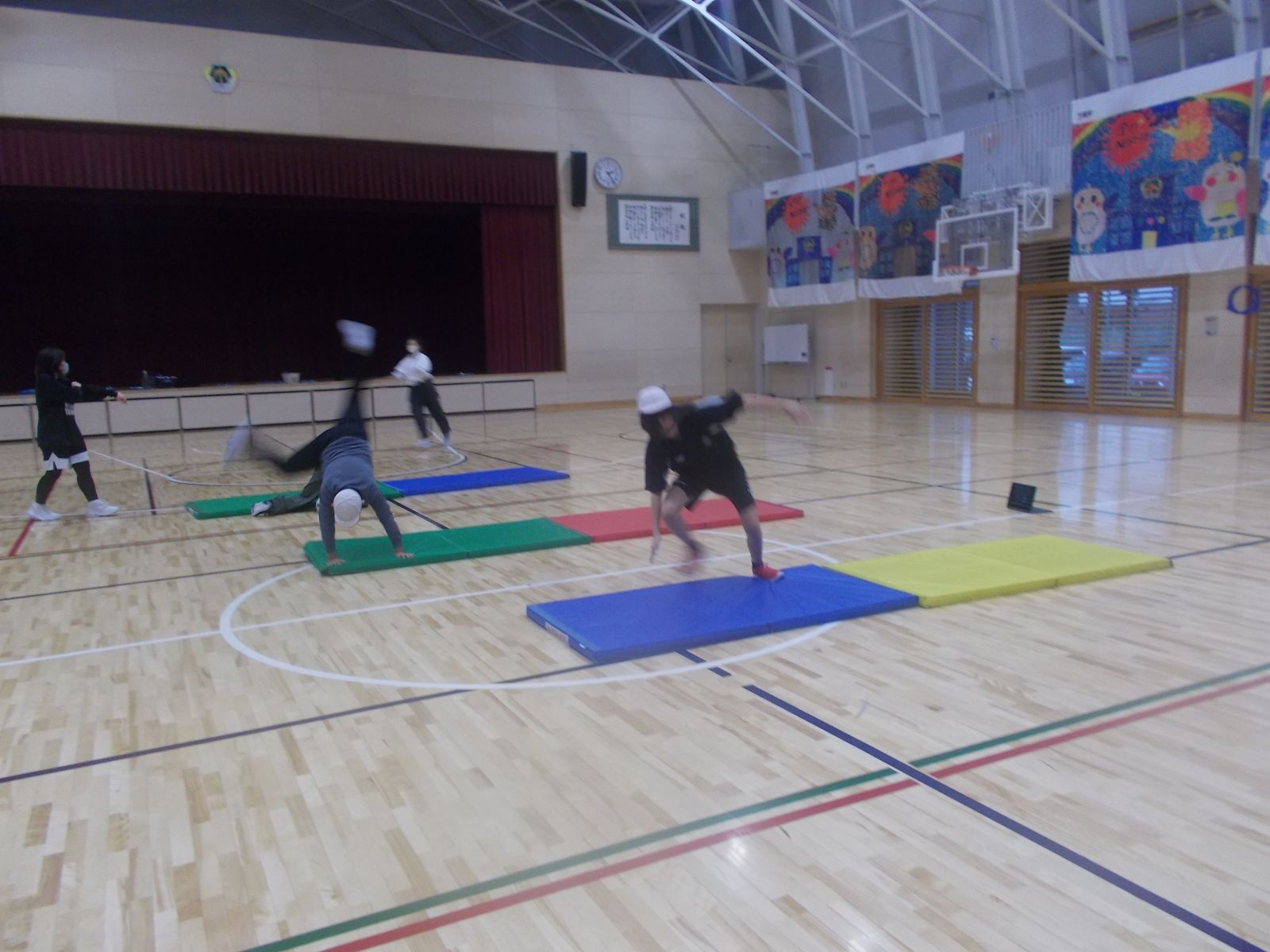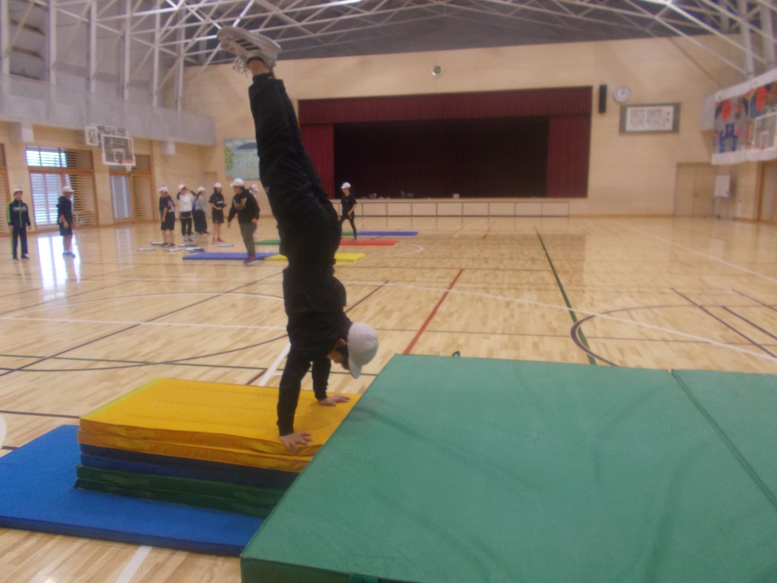 6年生は「倒立前転」や「ロンダート」などの技にチャレンジしています。