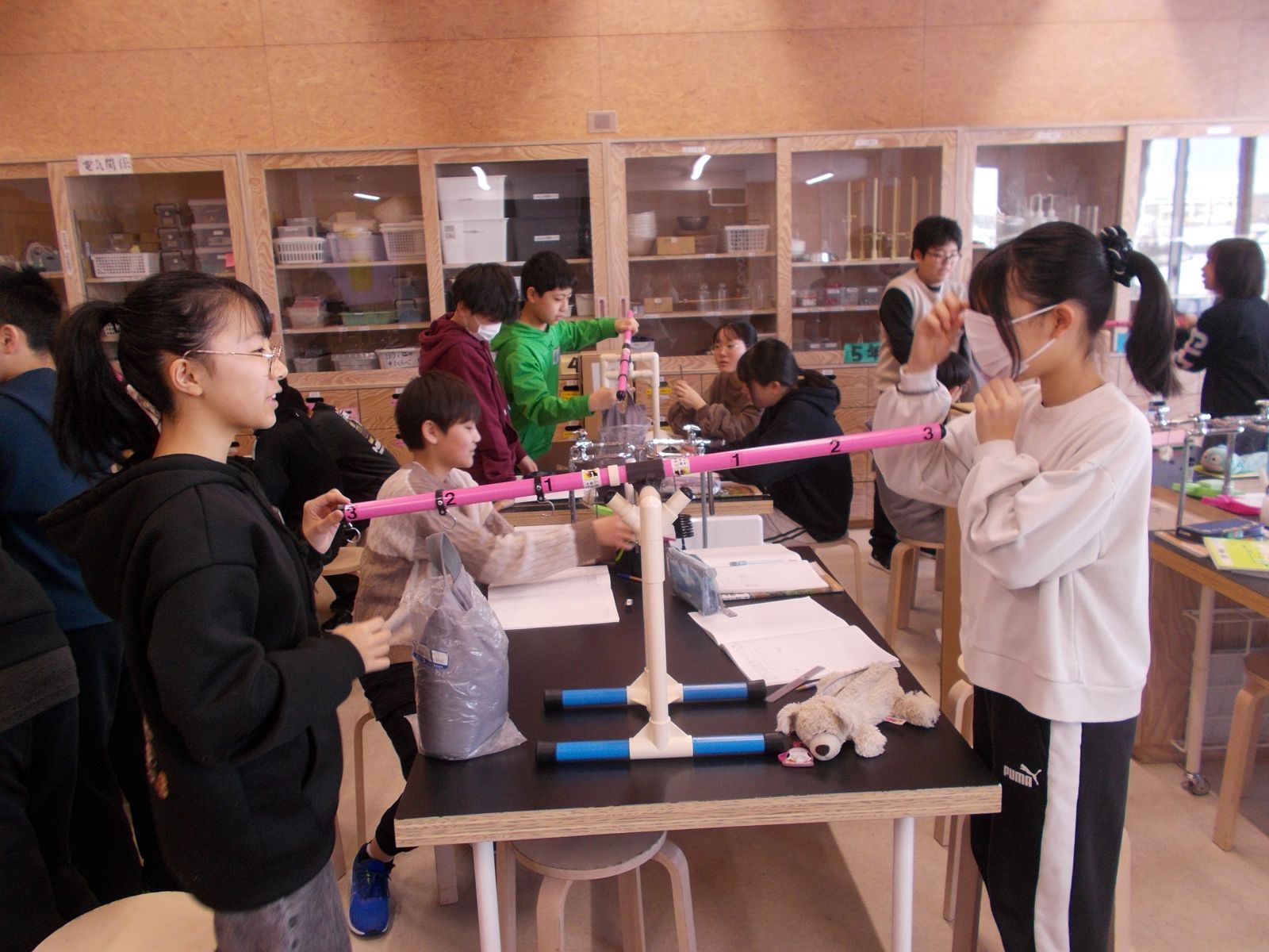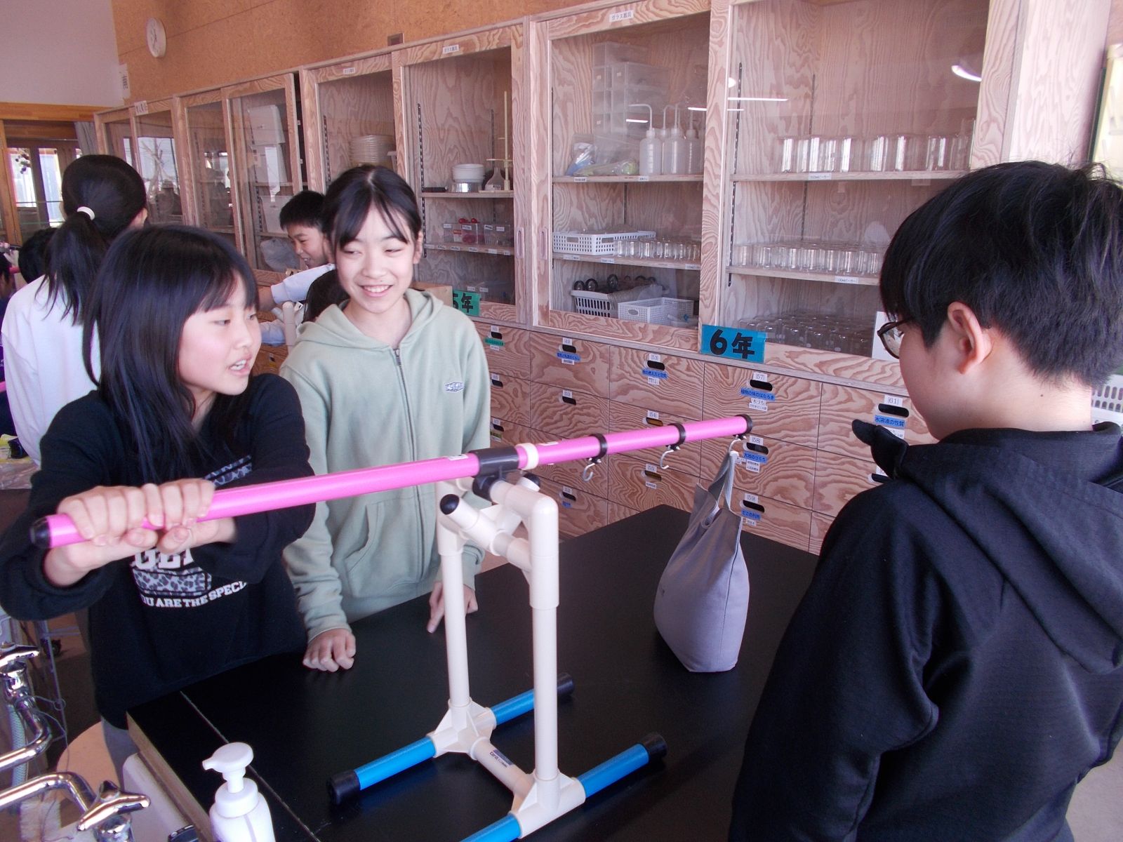 てこのはたらきをたしかめる実験を行いました。