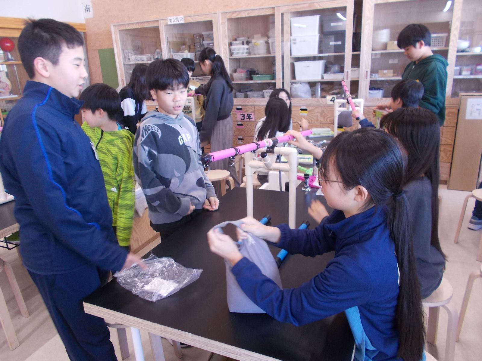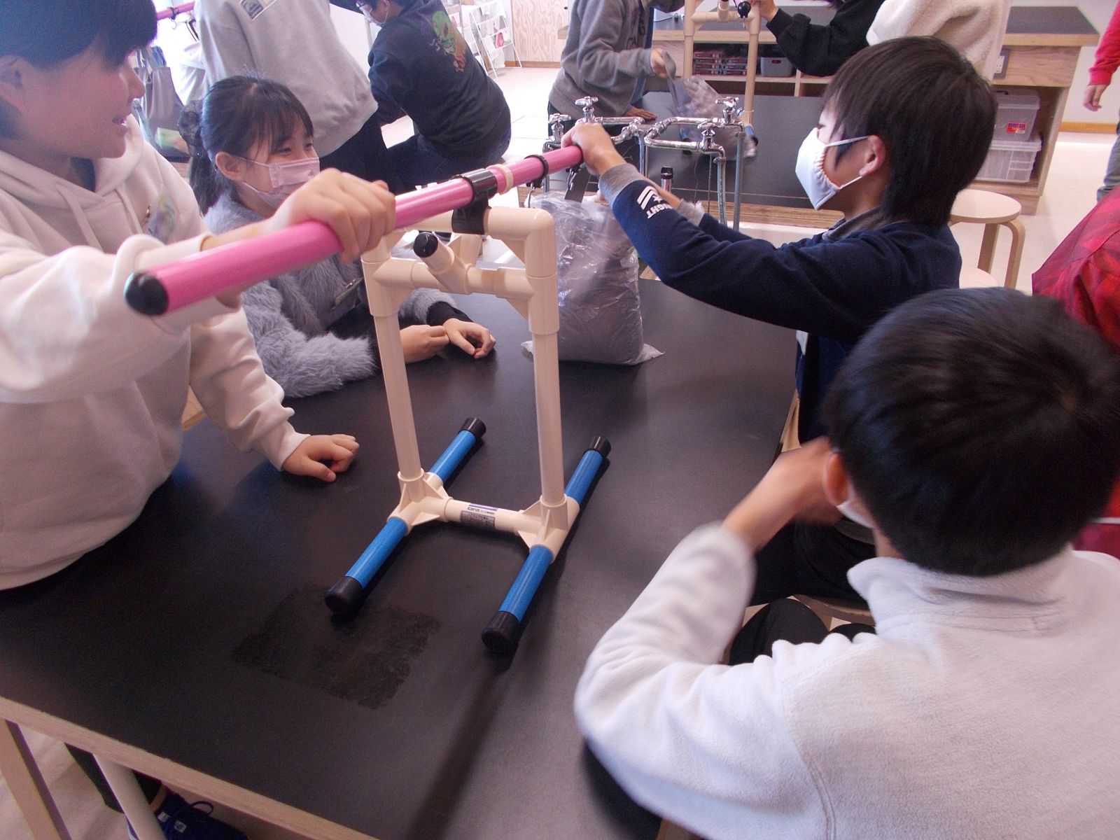 重りをかける場所や持つところを変えることで手ごたえが大きく変わることを体験できました。