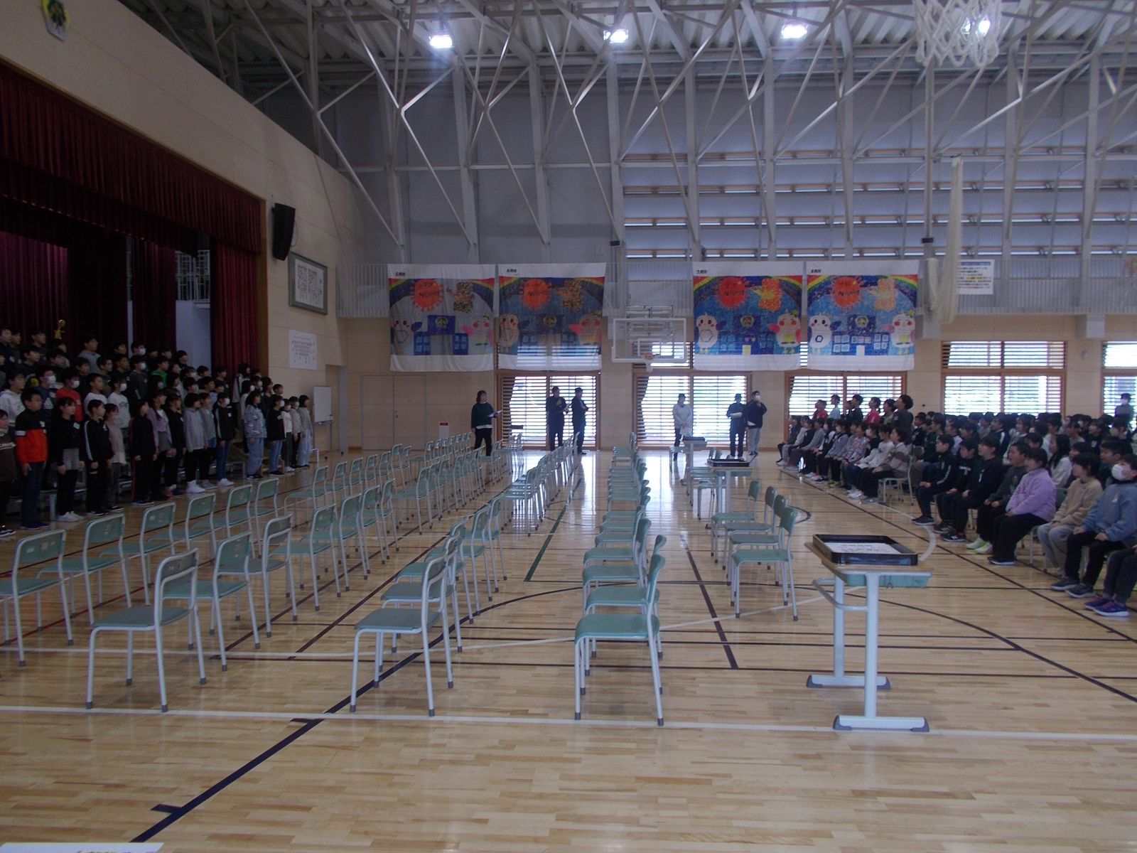 3時間目に初めて在校生と合わせて練習を行いました。