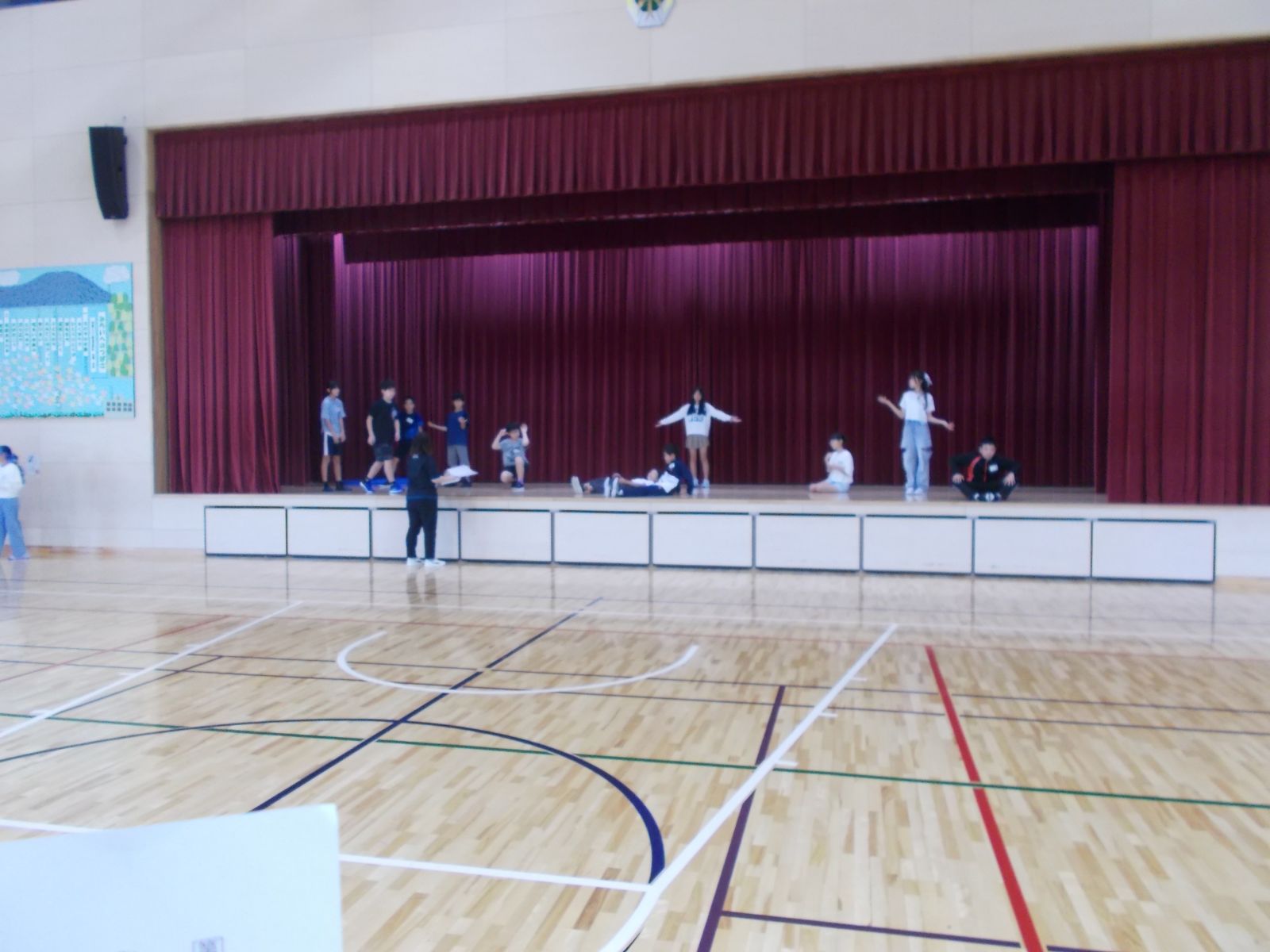 劇の練習を体育館で行いました。