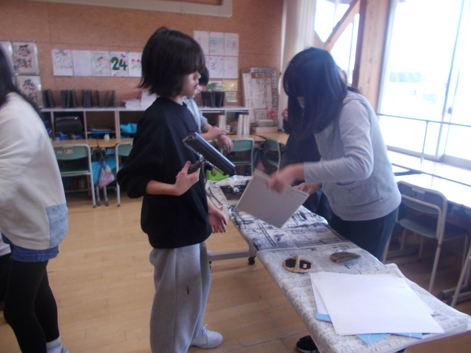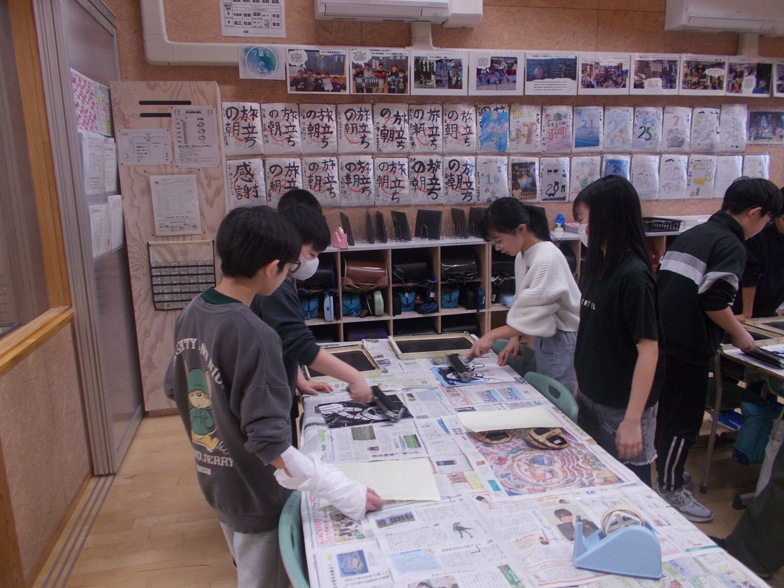 刷りの作業では、、インクをバレンで上手にこすり、素敵な作品が浮かび上がりました。
