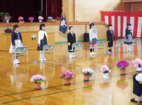 6名の児童の門出を全校児童と保護者、地域の皆さん、教職員でお祝いいたしました。卒業生の皆さん、これからのさらなる活躍をお祈りいたします。