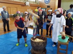 16日、お世話になった地域の皆様に感謝を伝える恒例の「大久喜のつどい」が行われました。今年度もたくさんの皆様のお力添えを受けて本校の教育活動が展開されています。この行事で感謝を伝えながら、さらに交流が深まったことと思います。お楽しみの餅つきでは、本校児童はもちろん、子ども園の園児さんの力も借りておいしいおもちが出来上がりました。
