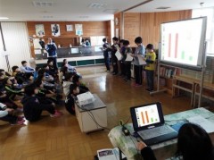 2学期に実施したゲーム実態調査の結果について、給食・保健委員会がグラフを使い発表してくれました。本校児童の8割以上が何かしらのゲームをやり、中にはゲームのやりすぎが生活習慣にまで影響している子もいるようです。ゲーム漬けのような状態になると、思いやりのない、我慢できない、やる気のない子どもに育つそうです。やりすぎに注意しましょう。