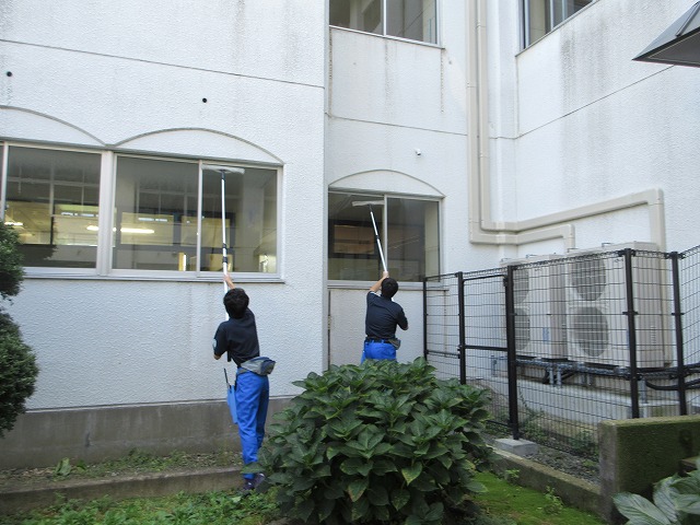 八戸高等支援学校の生徒さんによる窓拭きボランティア