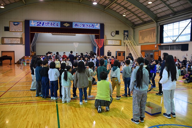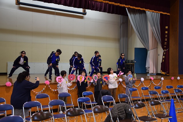 鮫小学校の6年生を送る会はどの学年の出し物も楽しく、あっという間に終了しました。