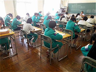 本日は2次考査。全校生徒集中して取り組んでいます。