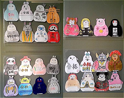 個々のアイデアでユニークなだるまたちが先輩を応援しています。