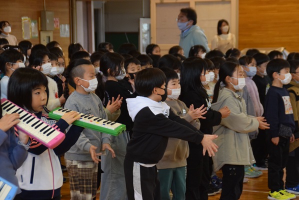 学年ごとに楽器の演奏をしたり振付をしたり、表現を楽しみました。