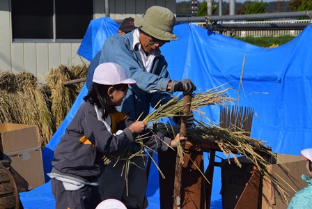 道具は千歯こきと橋ふみ脱穀機を使いました。