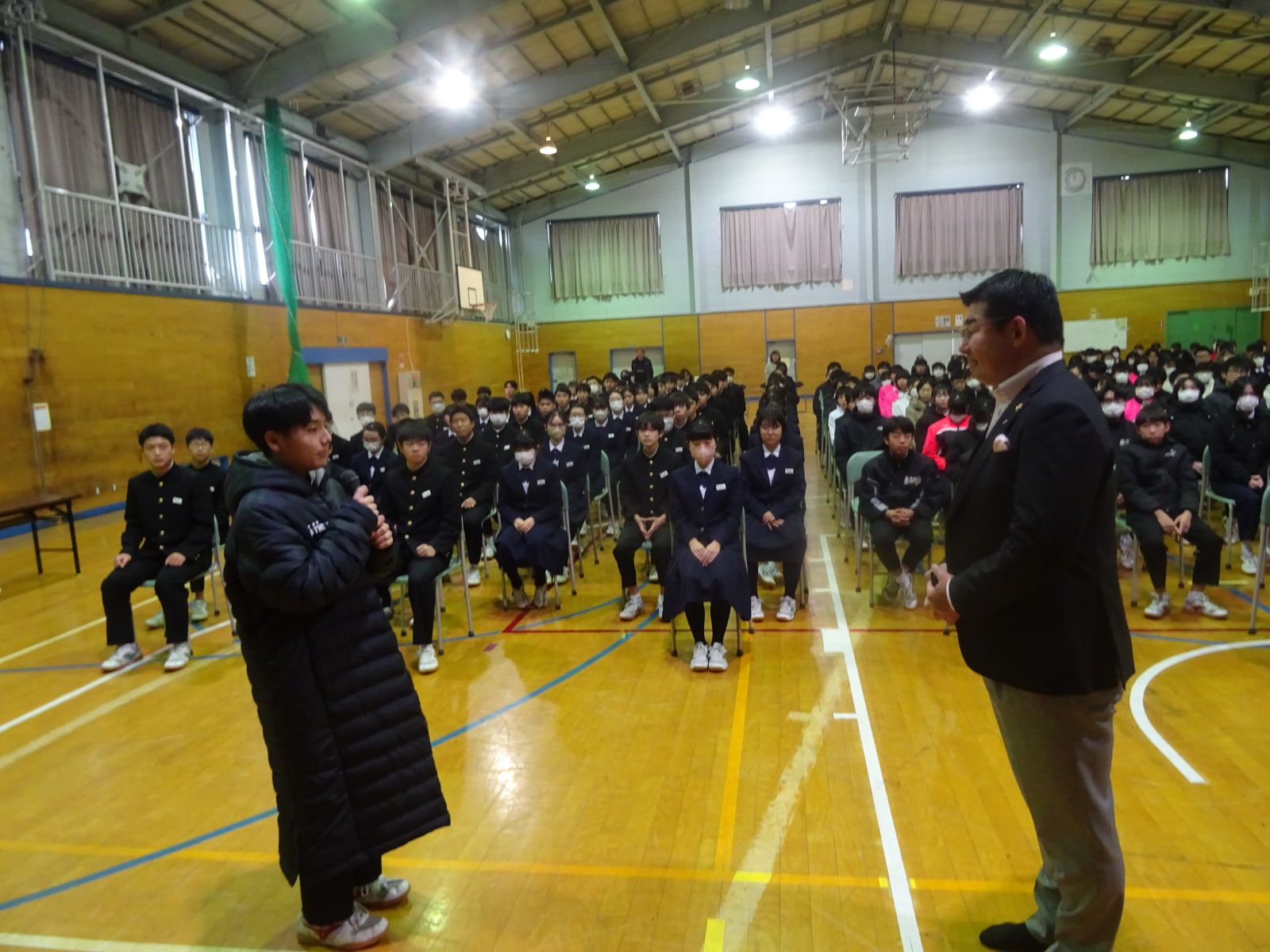 12月19日(金)、腰塚勇人先生をお招きし、「命の授業~ドリー夢メーカーと今を生きる」と題して講演会を行いました。自分の中に潜むドリームキラーに負けないよう、自分の命、他人の命を改めて大切にしなければいけないと感じた講演会でした。生徒のみなさんも真剣に講演に聞き入っていました。