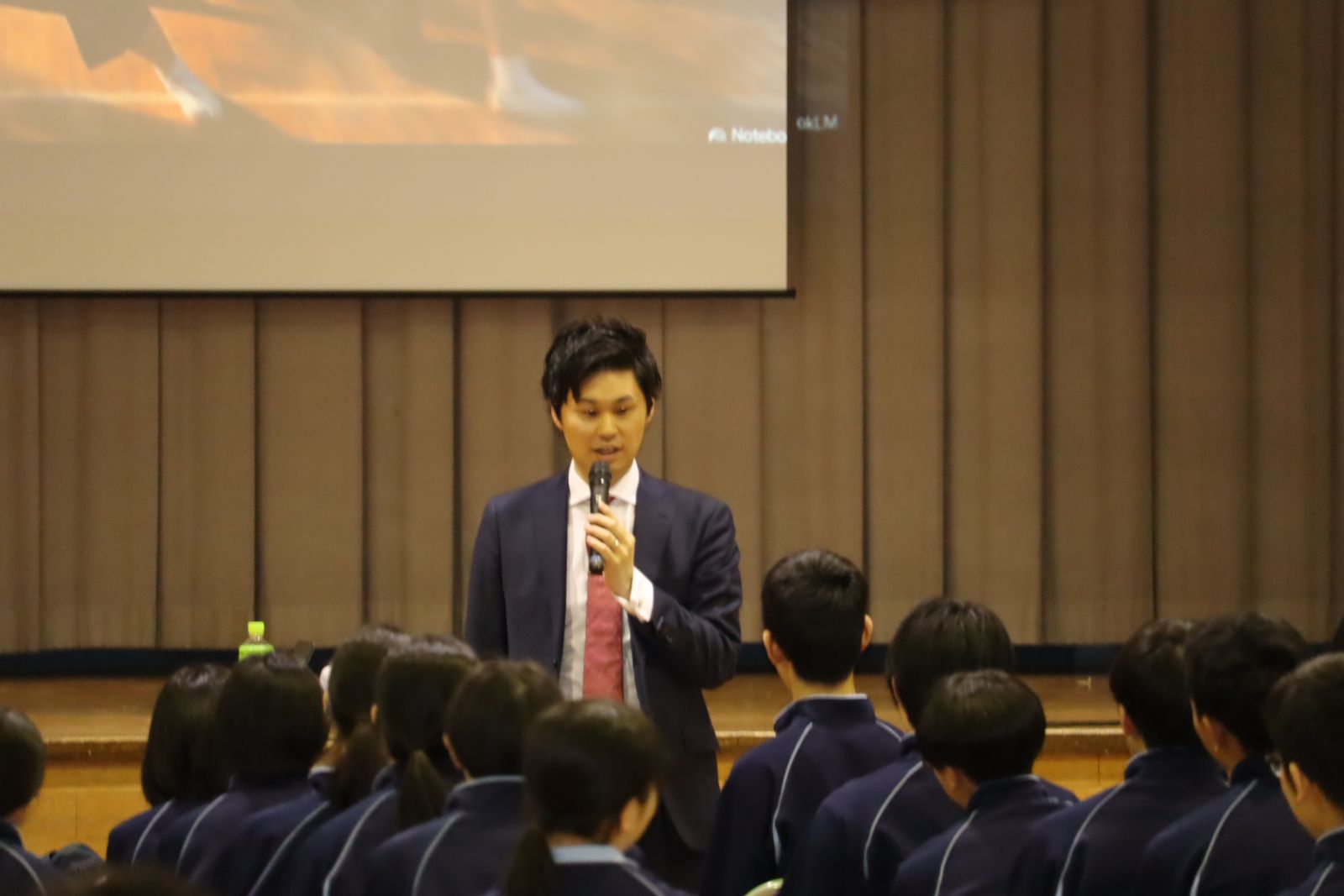 2月6日(金)、2学年が立志式を行いました。個人宣言、記念合唱のあと、「迷っていい。人生は複利。」と題して、本校卒業生である馬渡和哉氏にご講演いただき、最後は南中ソーランを力強く披露しました。最高学年となる来年度に向けて、心の準備が整いました。