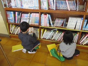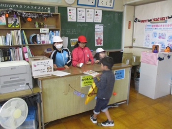 10月21日(火)今日の昼休みは、ちょうど雨が降ってきたので、子どもたちは、中で過ごしました。図書室には、たくさんの子が本を借りに来ました。