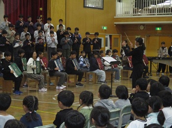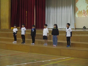 器楽部は、4曲披露してくれました。続いて開会の言葉と1年生の発表です。
