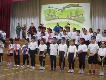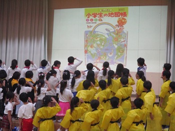 音読劇でしたが、歌やダンスも披露してくれました。3年生は、「世界を旅しよう」です。