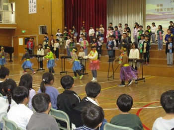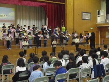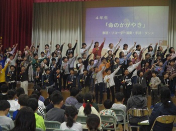 すてきなダンスを披露してくれました。4年生は、音楽です。テーマは「命のかがやき」です。