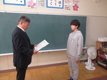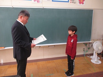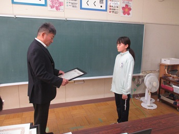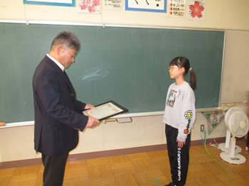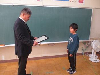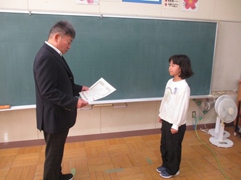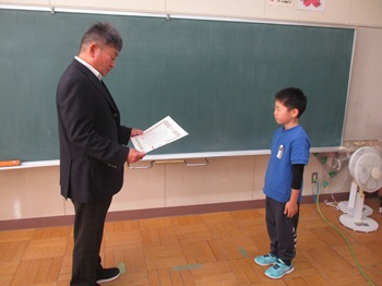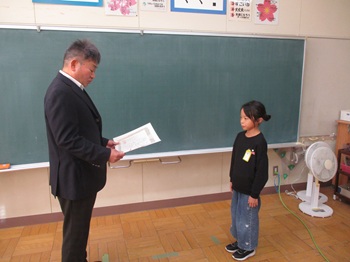 10月28日(火)先週の学習発表会は、たくさんの保護者のみなさまにご覧いただくことができました。本当にありがとうございました。今朝の全校朝会では、たくさんの児童が賞状をもらいました。まずは、青森県発明工夫展の表彰です。
